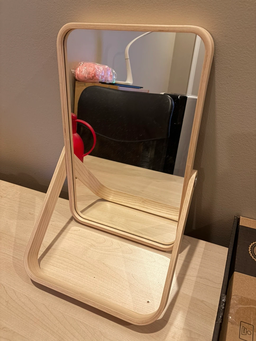 Buy & SellWooden Tabletop MirrorWooden Tabletop Mirror$10This is a simple tabletop mirror with a light wood frame. It's perfect for a desk or vanity. The frame is made of wood.ConditionLike newWHERE TO MEETCross of Tralfagar & 21stView MapSELLERverifiedCecile XuKitsilano750 reviews2 chats·0 favorites·13 viewsSEND CHAT TO SELLERHi Cecile Xu! I’m interested in your listing.Hi Cecile Xu! I’m interested in your listing.Get the Karrot app to chatSign In to chat