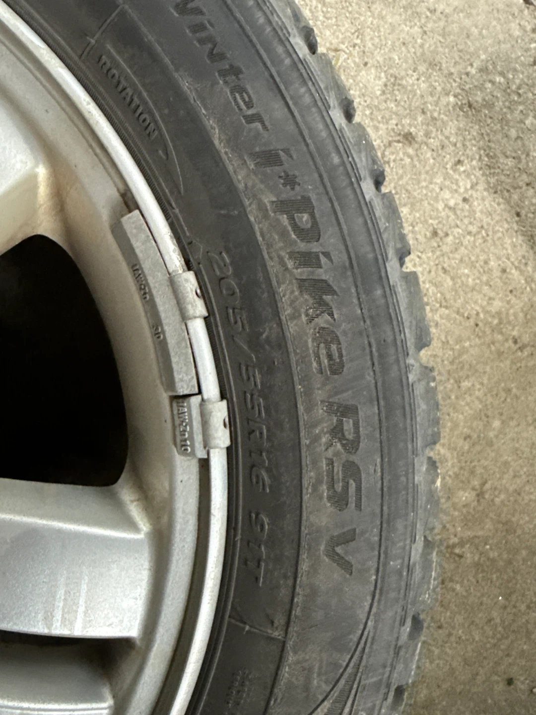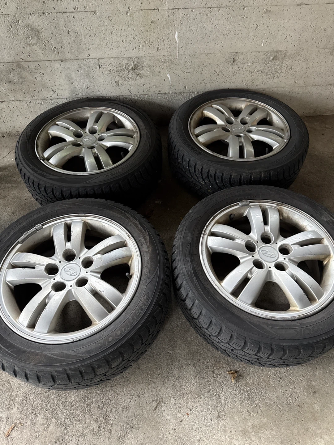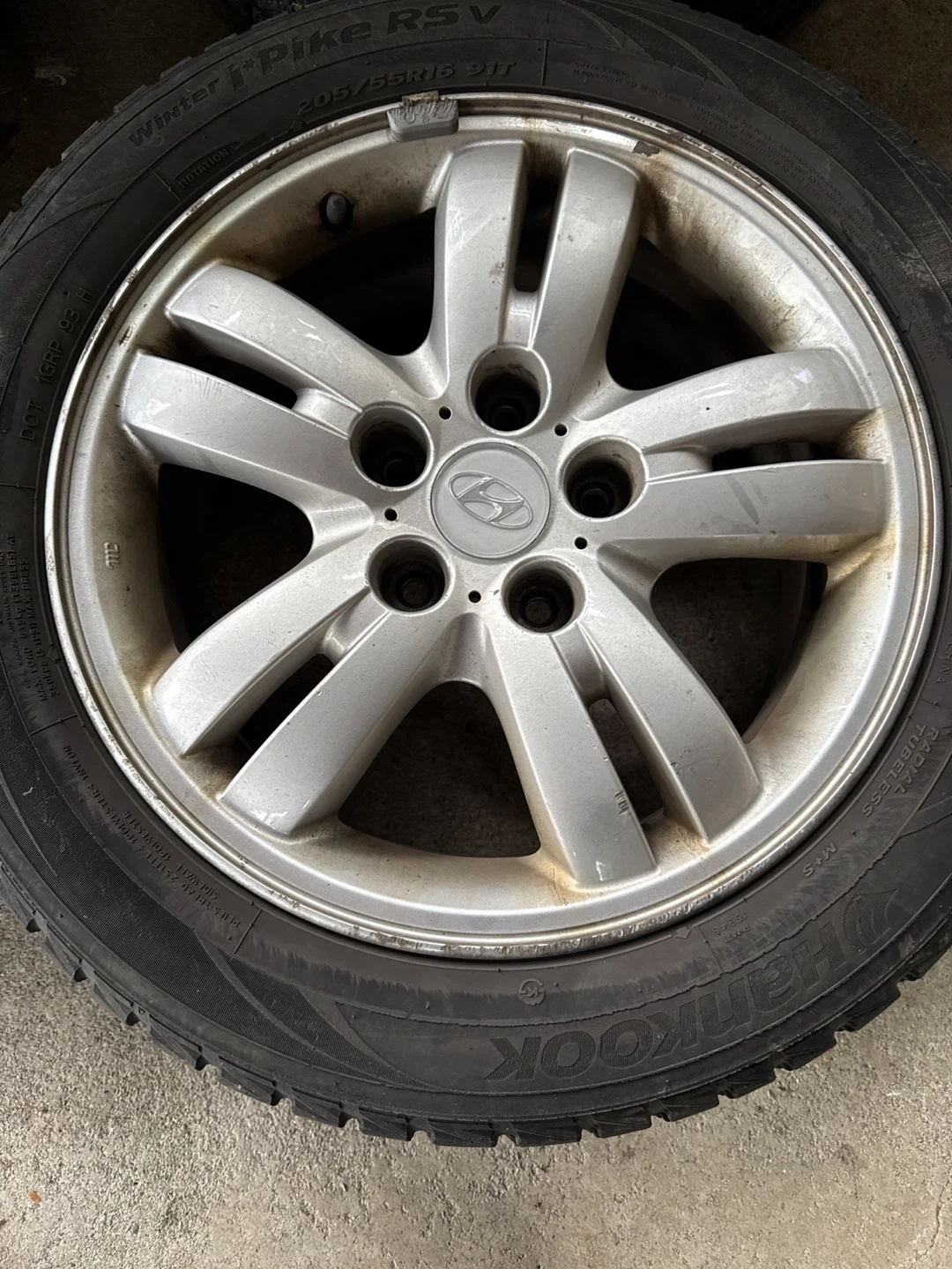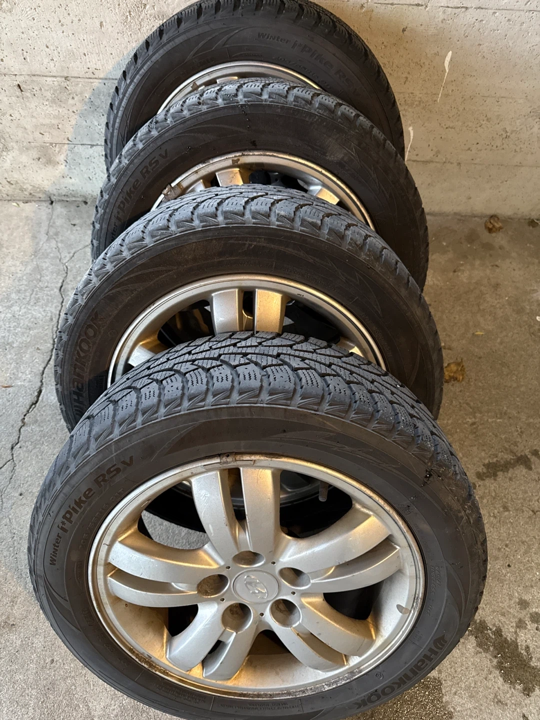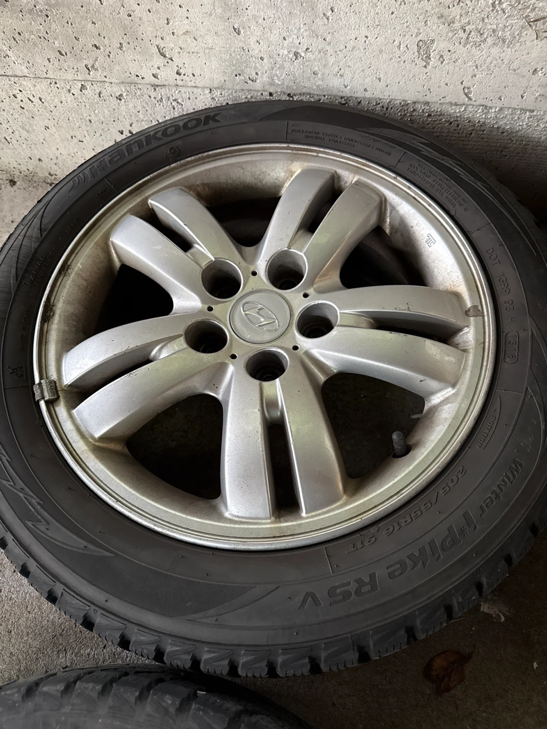 Selling a set of four Hyundai rims with Hankook Winter i*Pike RS tires. Tire size is 205/55R16. They're in good condition, ready for the winter season! Sold car and no use for it. $425 OBO