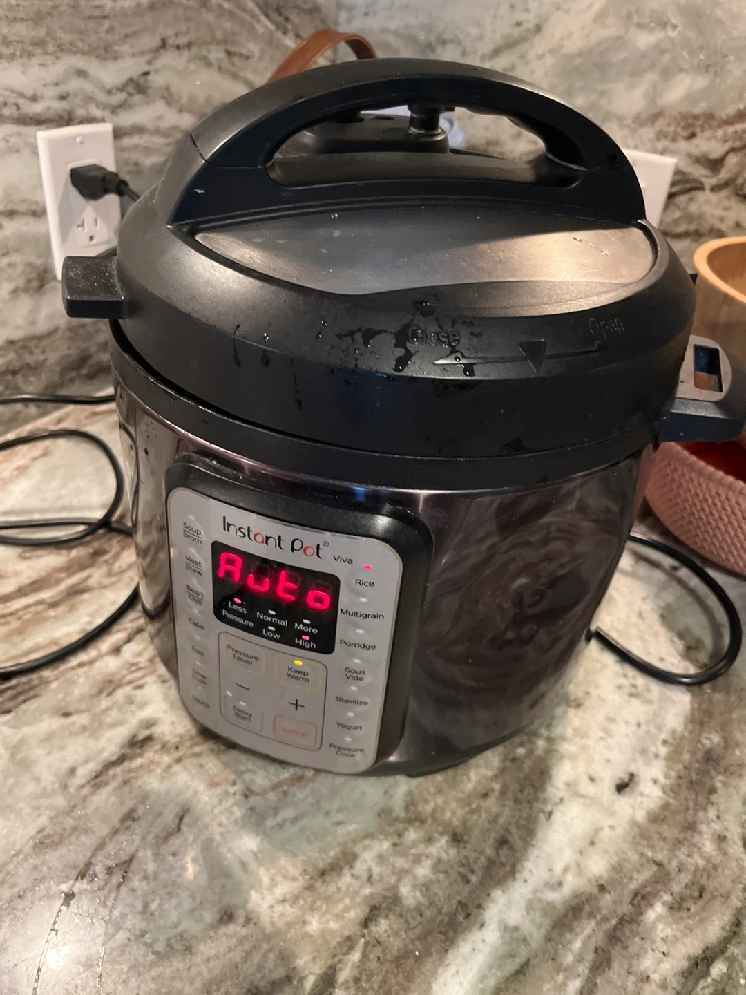 Instant Pot Viva 6-in-1 electric pressure cooker. It's a multi-cooker with various functions like soup, broth, rice, and sauté. Comes with multiple preset programs for convenience.