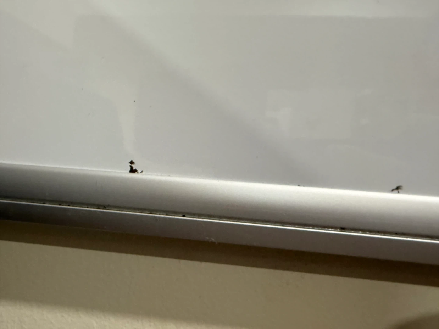 24” x 36” whiteboard. Used for about a year. Great condition overall. Some tiny scrapes as shown and a spot where the whiteboard part is flaking off a bit in the corner. Neither affects the functionality of the board at all!