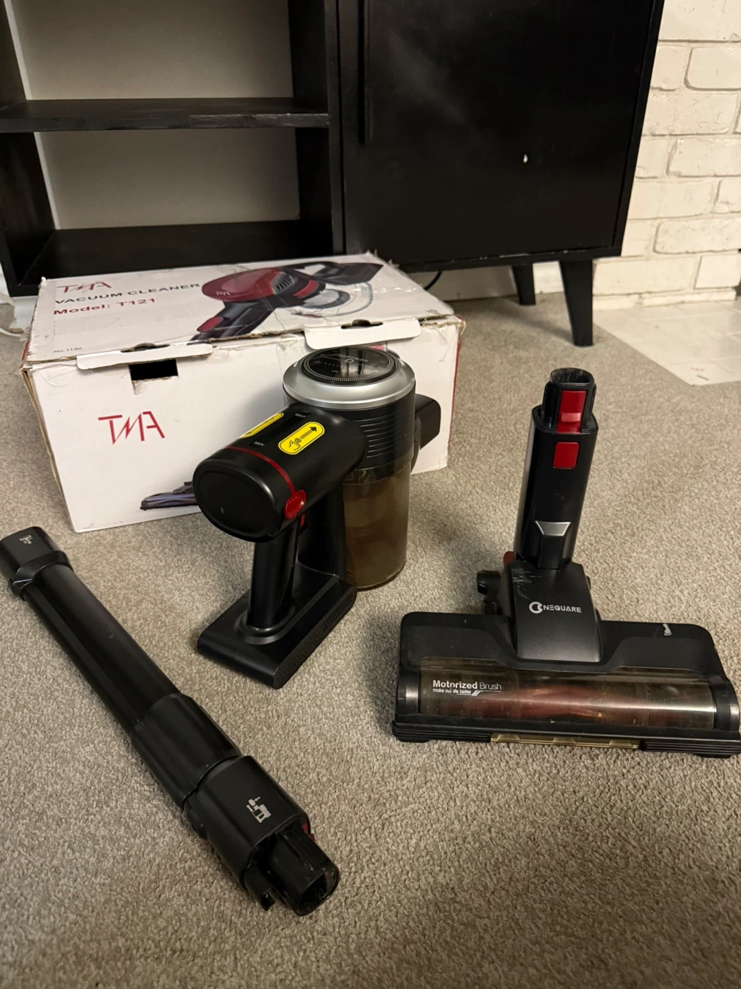 Description: Very Clean Nequare S26 cordless stick vac only used a handful of times, needs a battery charger and may need a battery!