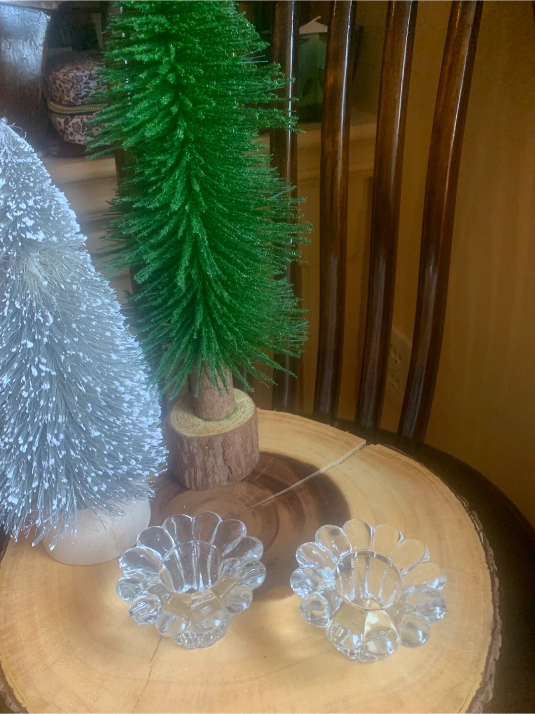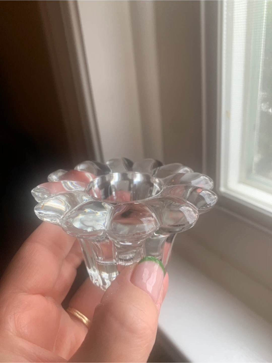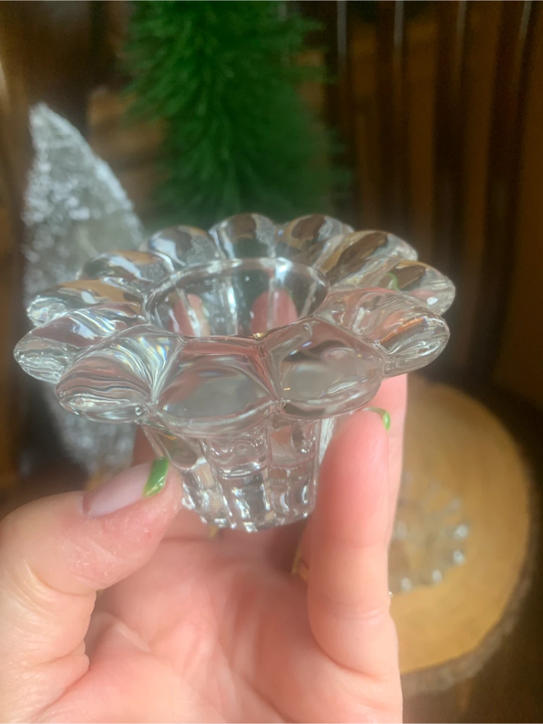 Vintage Clear Glass Flower Candle Holders (Set of 2)