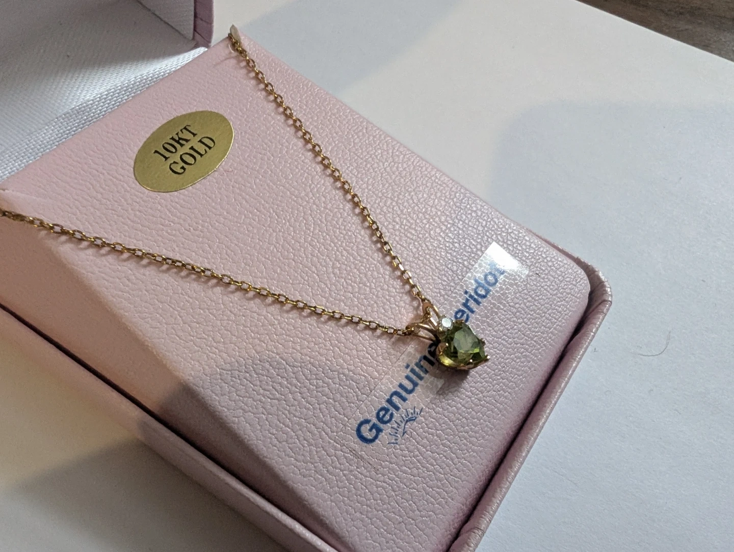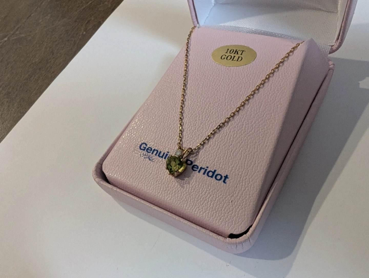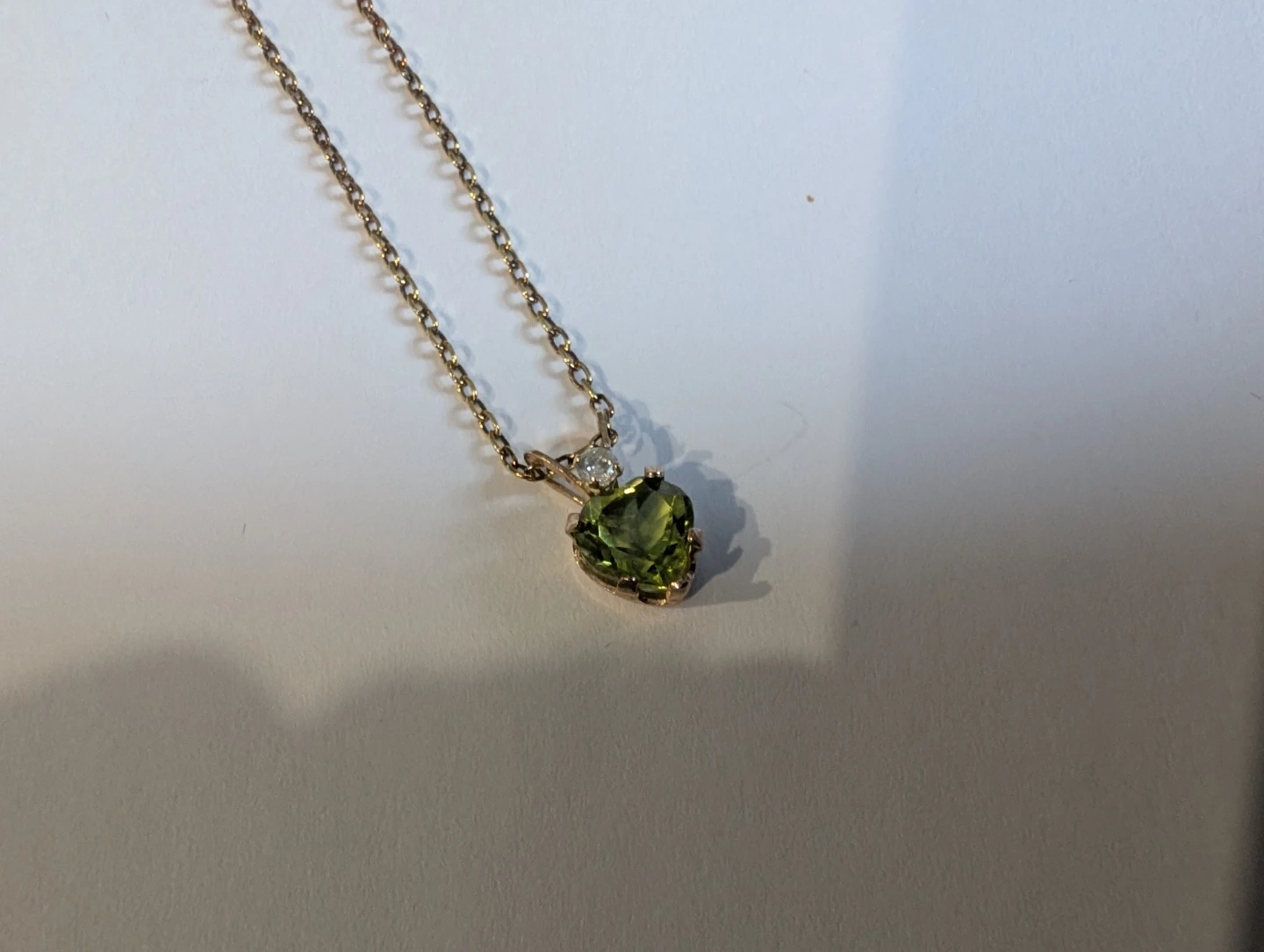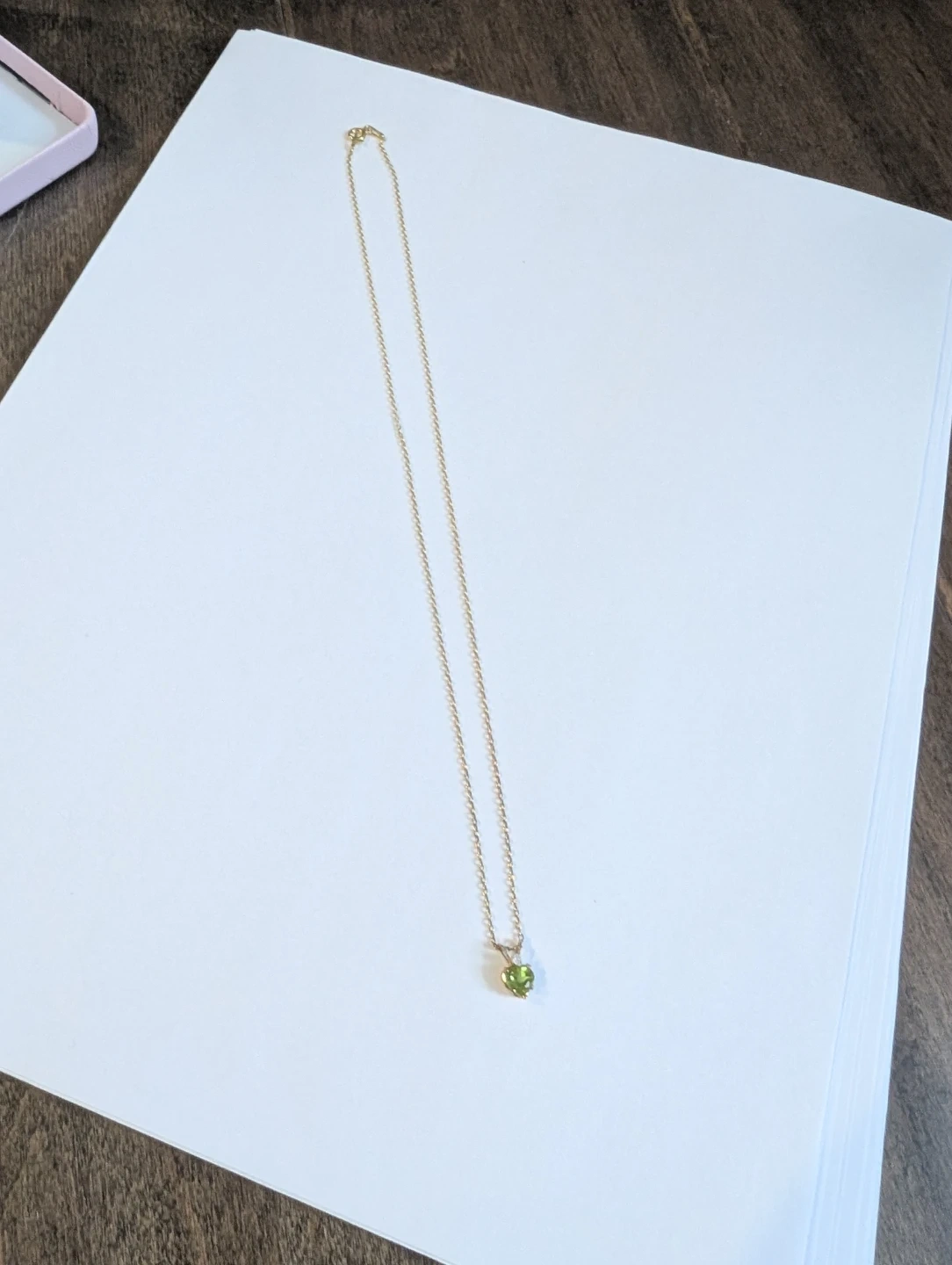 Brand new 10kt yellow gold natural peridot gemstone necklace and pendant for sale. Natural peridot gem stone 0.65ct, gold plated sterling silver chain, August birthstone, $150 FIRM.