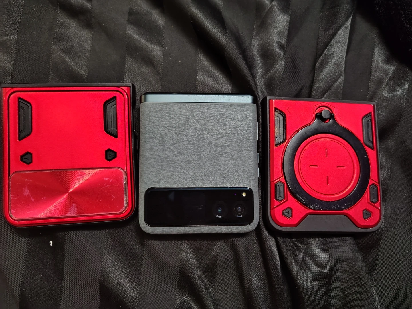 Comes with cover, This is a Motorola Razr flip phone in a gray color. It's a unique foldable design. The phone's screen displays the time and a wallpaper. It's for Boost Mobile clients or for anyone looking to go to boost mobile.