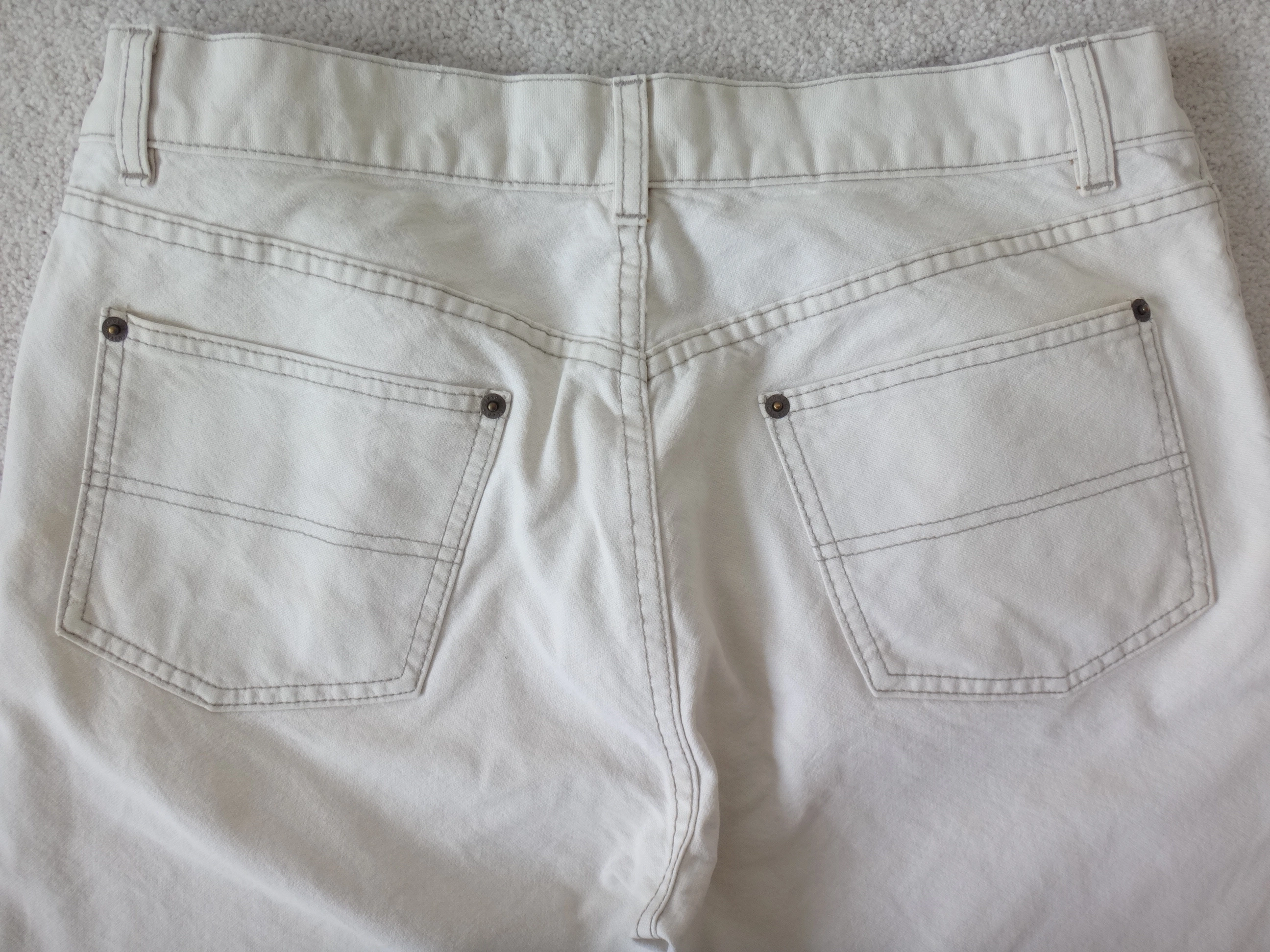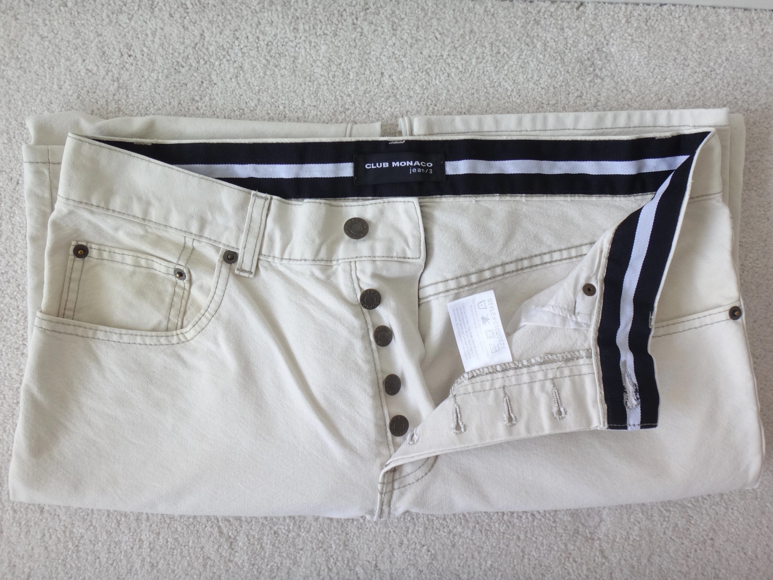 CLUB MONACO men's 32 waist x 32 length off white/beige 5 pocket denim jeans.