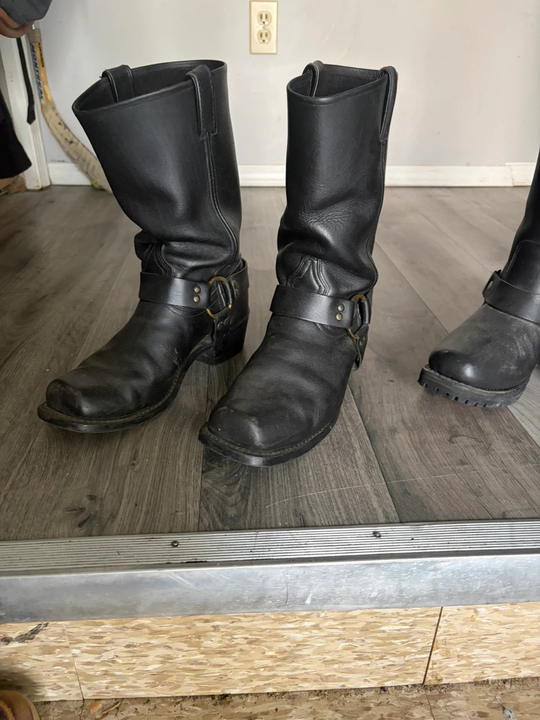 Black Leather Harness Motorcycle Boots
