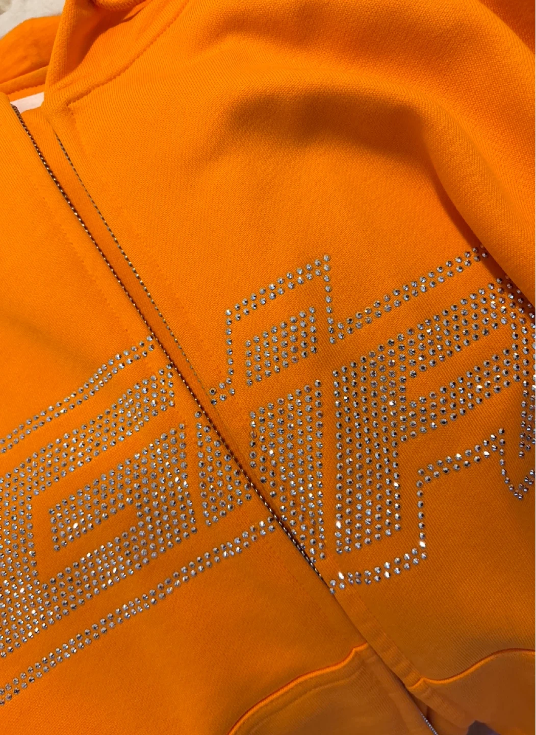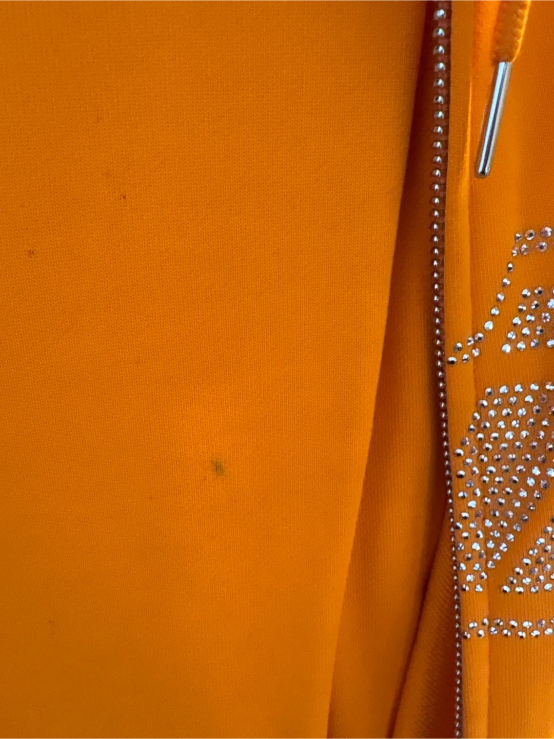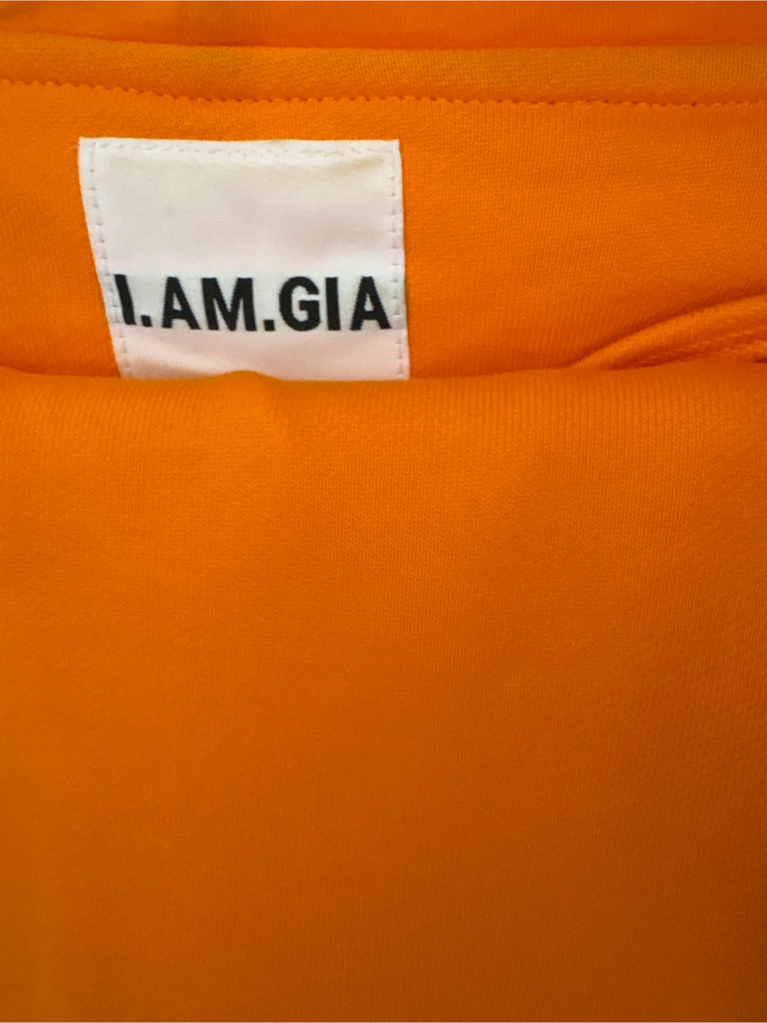 65I'm selling a cute I.AM.GIA tracksuit set in a vibrant orange colour! It's in good condition with a few minor spots. It will probably come off with a stain remover but it’s small. It’s an oversized fit! This set is super comfy and stylish, perfect for lounging or running errands