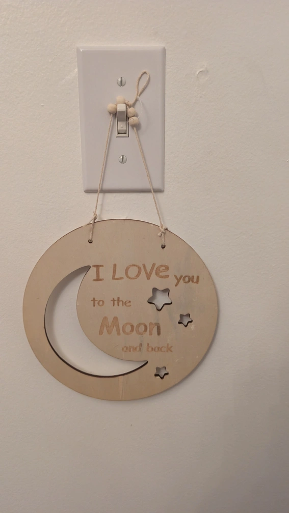 A cute wooden sign that says "I Love You to the Moon and Back"! Perfect for a nursery or any room that needs a little extra love
