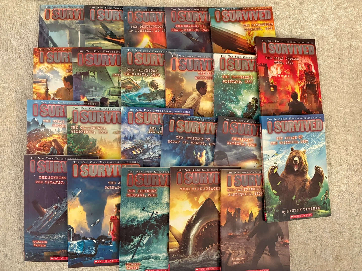 Selling the "I Survived" novel series by Lauren Tarshis! These books are great for young readers who enjoy historical fiction and adventure. Each book tells a thrilling story of survival during a different historical event. Perfect for kids who love to learn and read! total 22 books + 1 graphic novel book