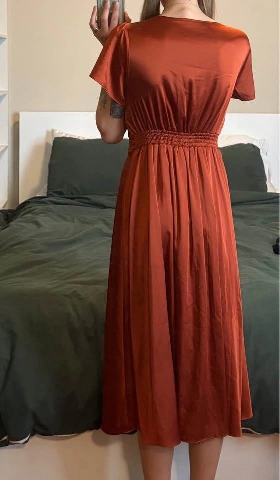 Burnt orange, long, silky dress for sale!