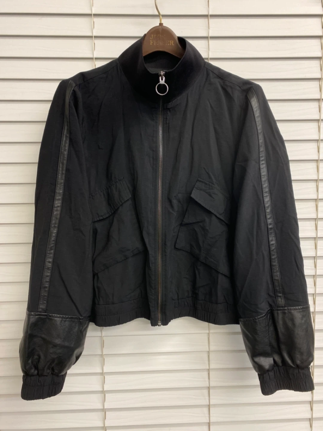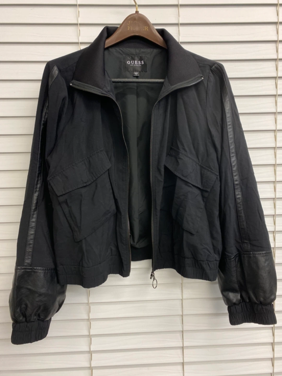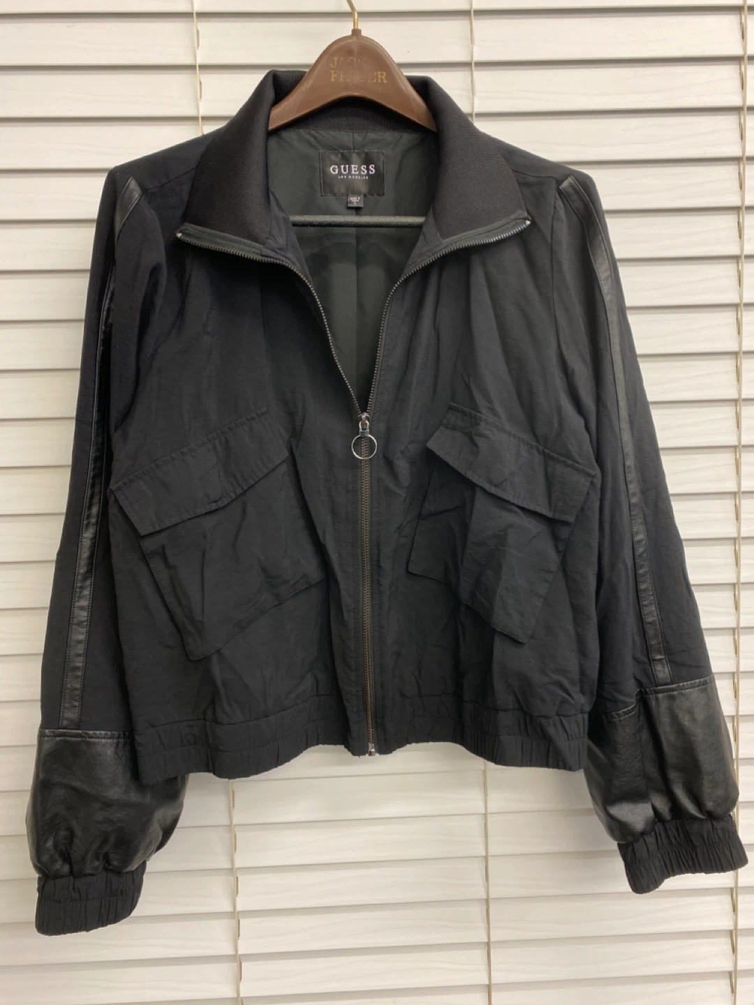 GUESS Lightweight Full-Zip Utility Jacket w/ Faux Leather Sleeve Accents Women’s - L