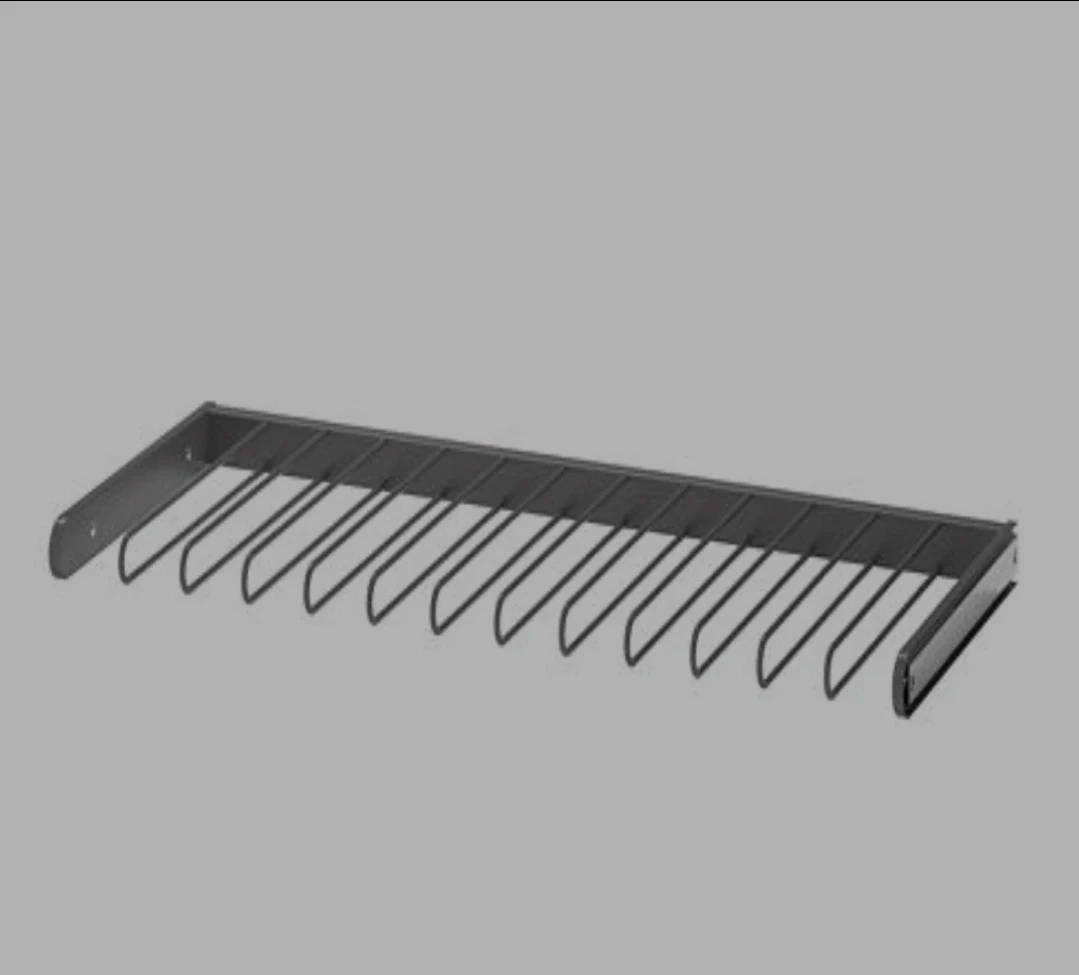 I have in white color, too. This pull-out trouser rack holds multiple pairs of pants. It's made of metal and mounts inside a closet. It's great for organizing slacks and jeans!