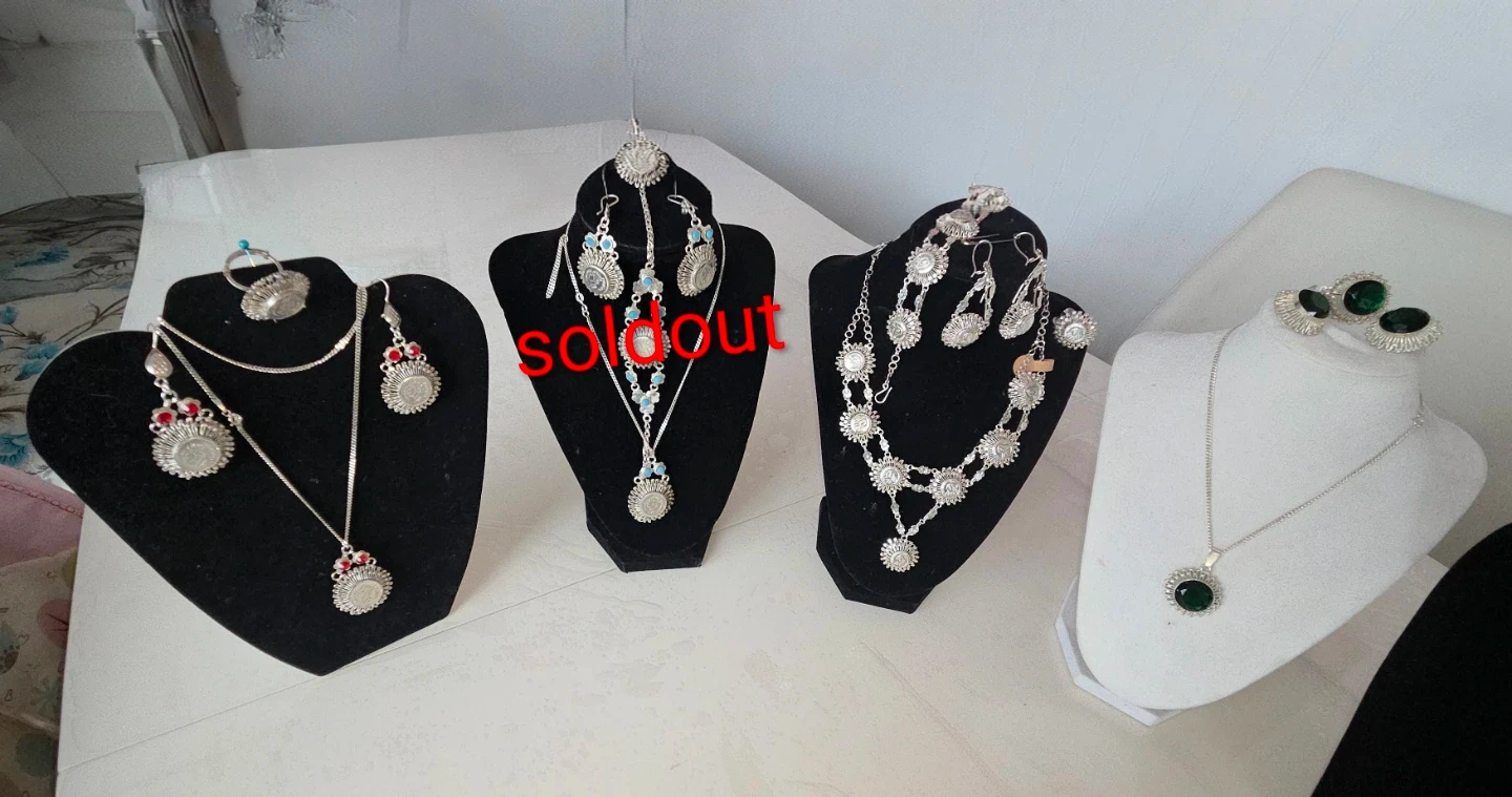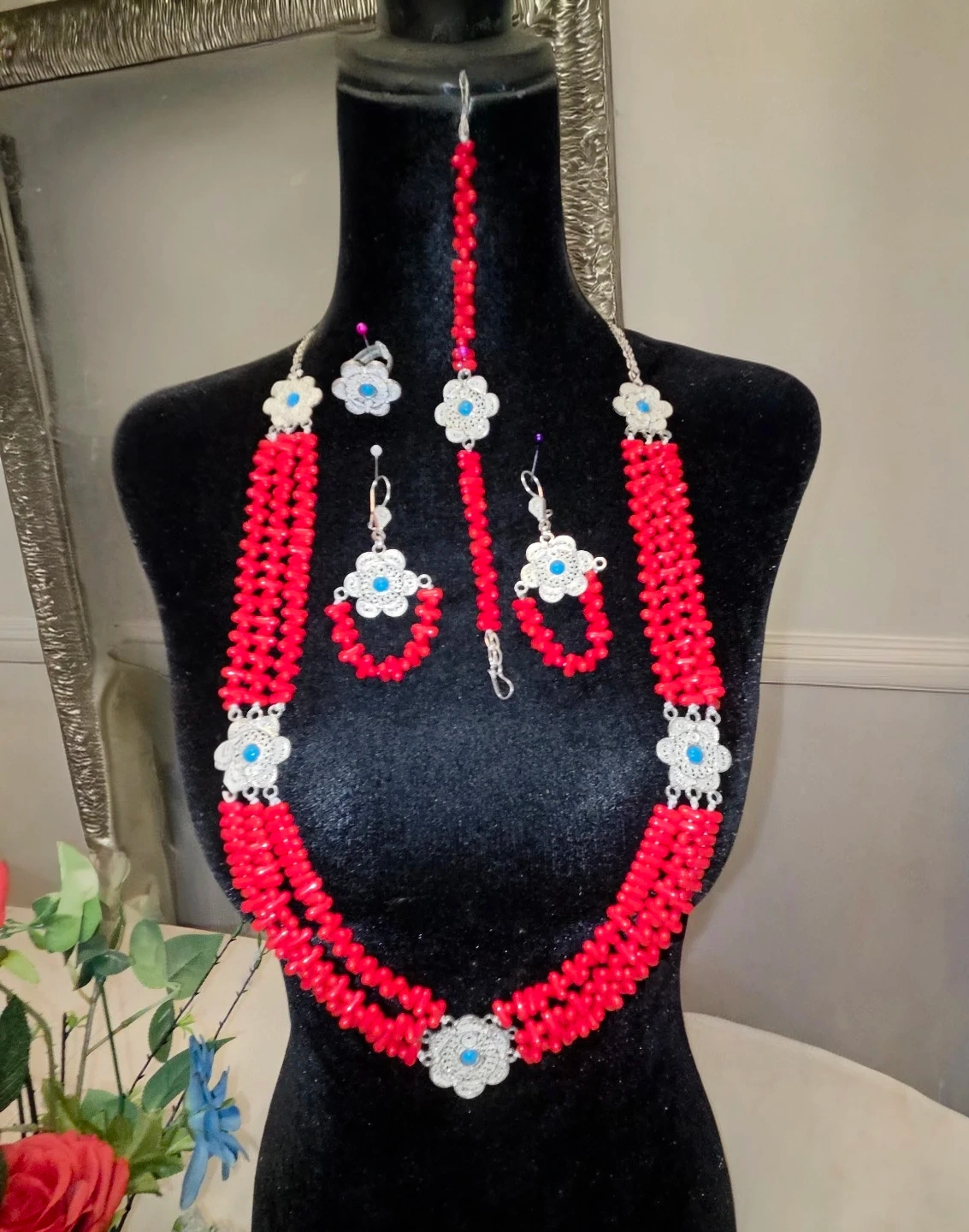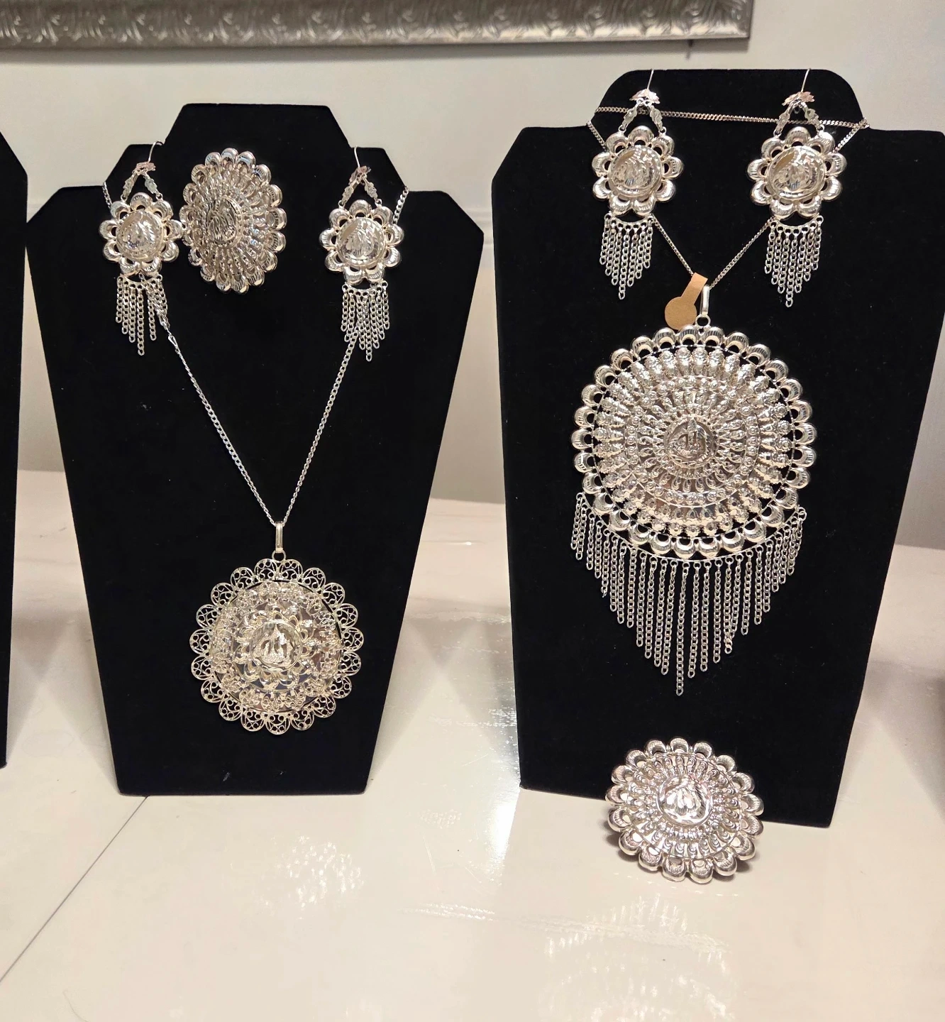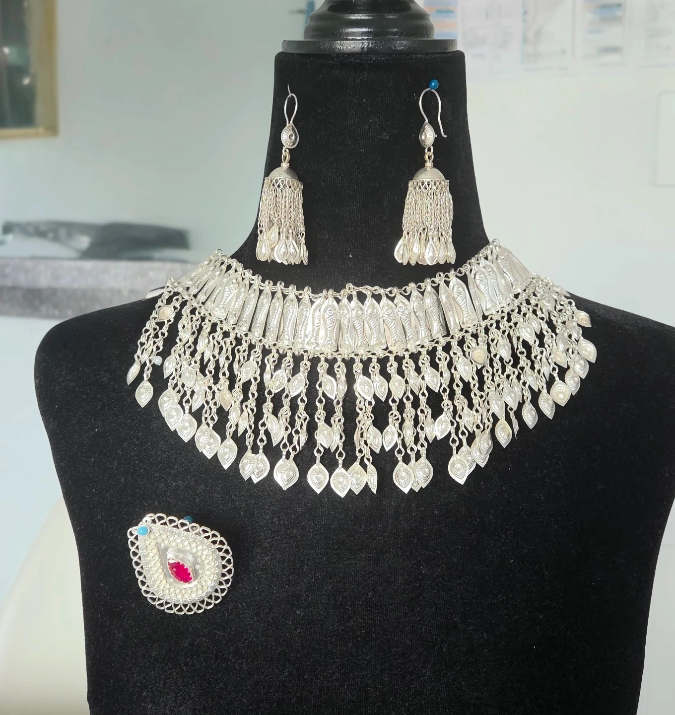 Afghan Silver Tone Filigree Necklace and Earring Set