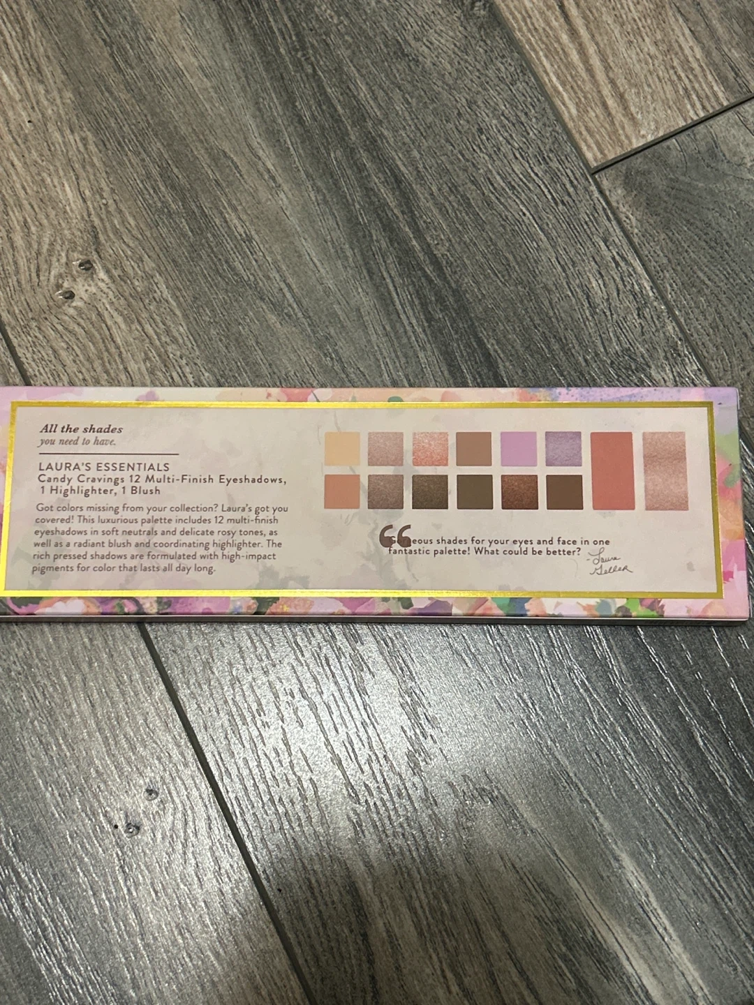 Selling a Laura Geller Laura's Essentials Candy Cravings palette! It includes 12 multi-finish eyeshadows, 1 highlighter, and 1 blush. The palette has soft neutrals and delicate rosy tones, and all shades are richly pigmented for long-lasting colour