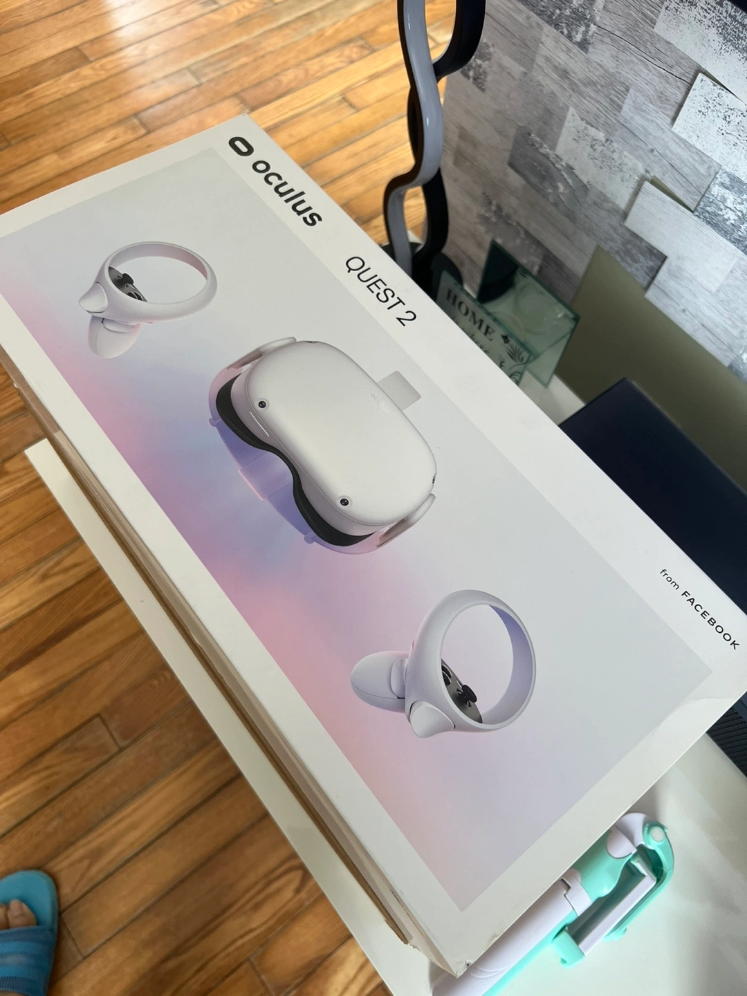 Oculus Quest 2 VR headset, two controllers, and BOBOVR battery pack and head strap. Excellent condition, includes original box.