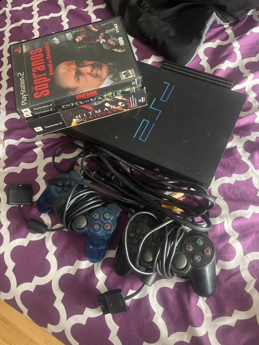 Bundle includes Enter the Matrix, Hitman Trilogy (Silent Assassin, Contracts, Blood Money), and The Sopranos: Road to Respect for PlayStation 2. All games are rated Teen or Mature. Games come in original cases.