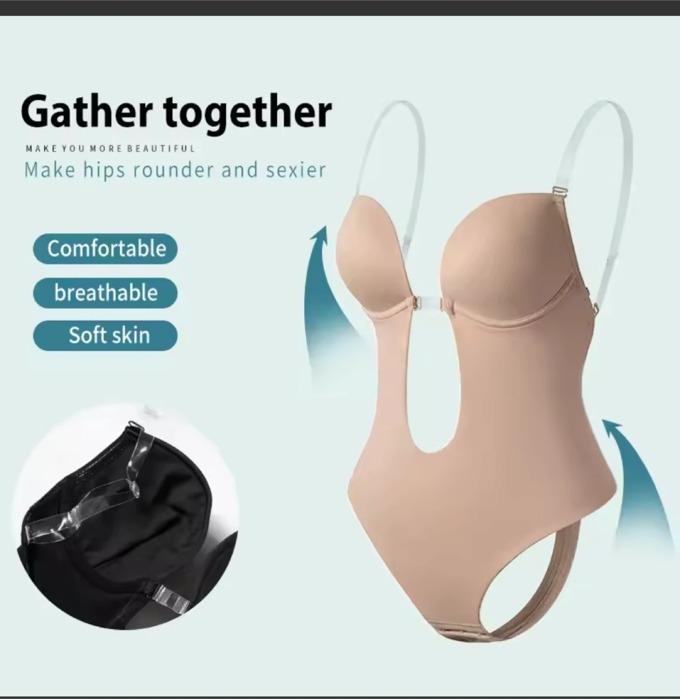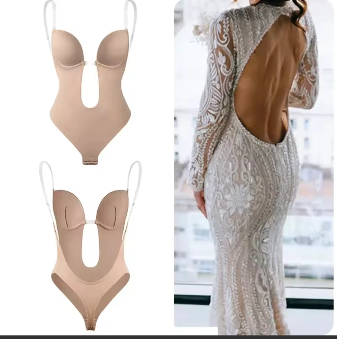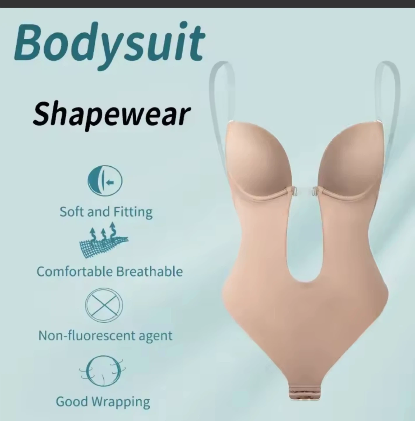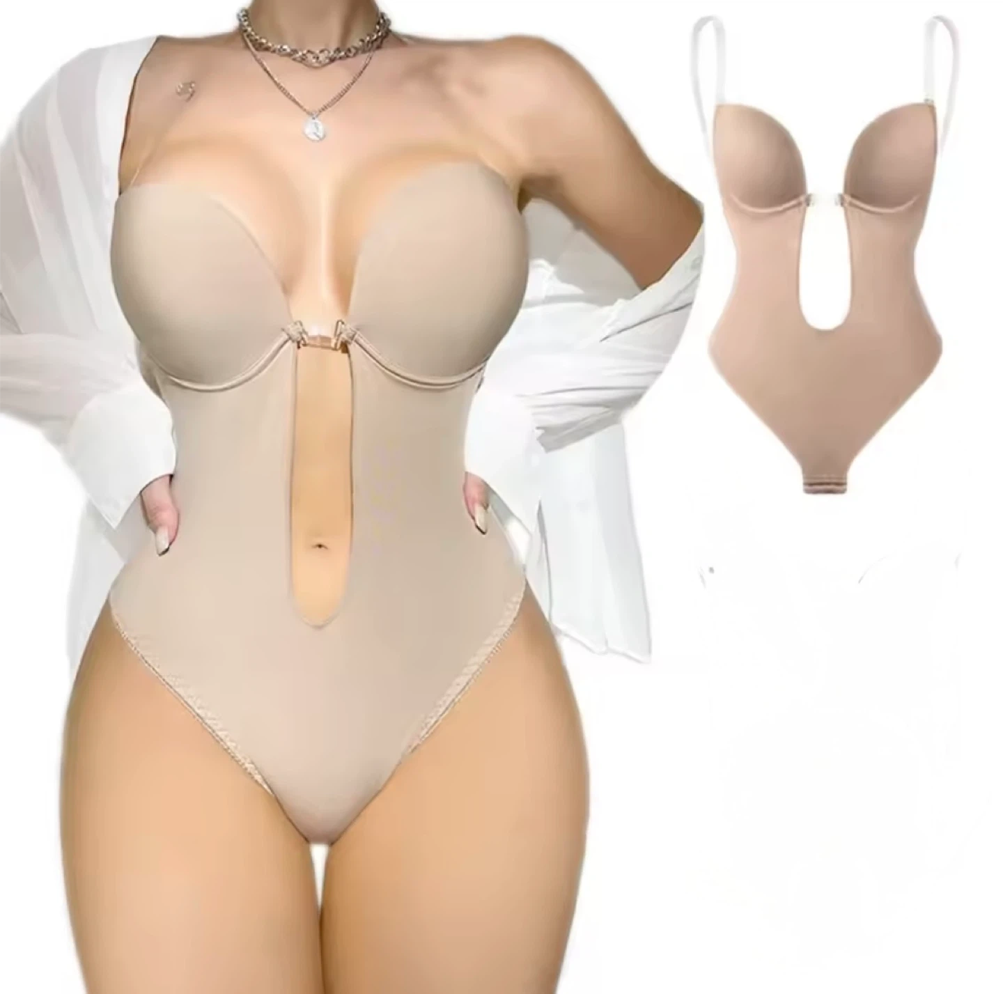 This bodysuit shapewear offers a deep plunge neckline and is designed for comfort and a smooth silhouette. It's made with breathable fabric for all-day wear. This garment is perfect for low-back and strapless outfits.
