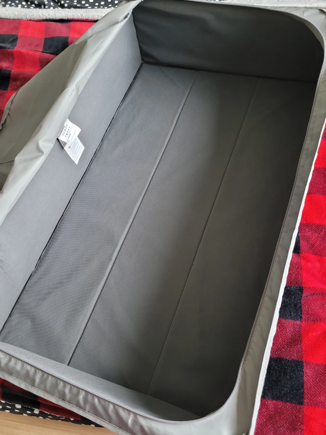 This is an IKEA SKUBB storage box. It measures 90x53x19 cm (35 1/2x20 3/4x7 1/2").