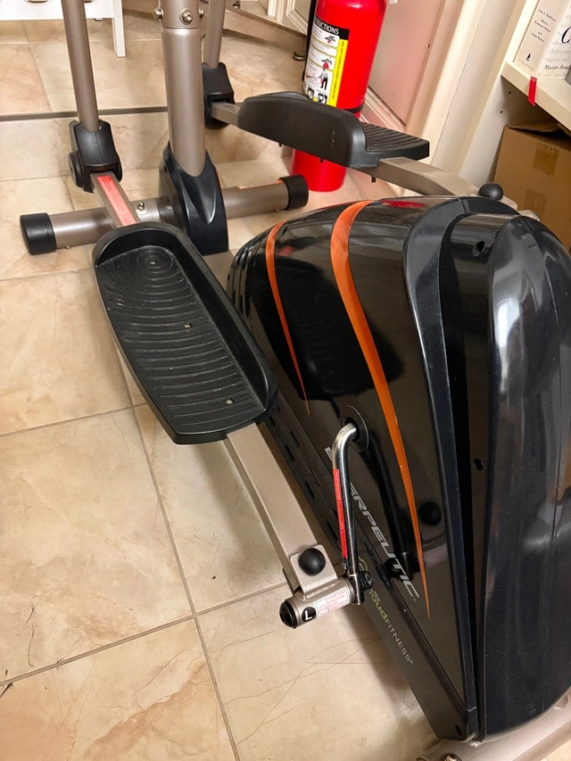 Fully assembled and working elliptical. Needs new batteries for the console. Please note: you will need to remove this from a third-floor apartment without an elevator. Bring a friend! Elliptical dimensions – 23" W x 54" L x 63" H. Item weight – 74.5 lbs. Weight Capacity – 300 lbs. 8 Level magnetic tension resistance adjustments. Easy to read 3.4" large window LCD display shows distance, calories burned, time, speed, pulse, and scan. Bluetooth Smart Cloud Fitness with the free MyCloudFitness app available on Android and iOS to track your workouts. 3 Workout goal settings via MyCloudFitness App: time, distance, and calories burned.