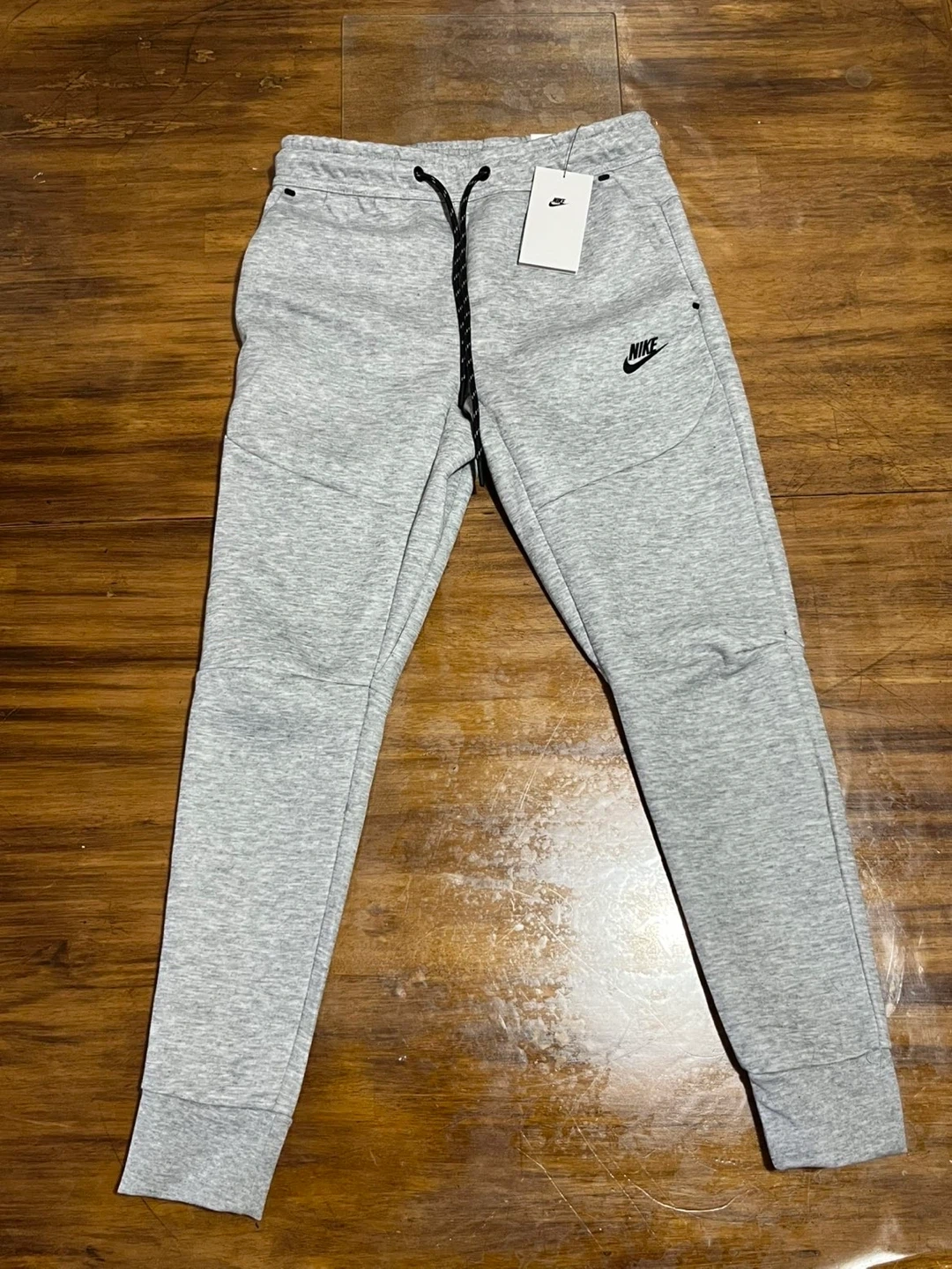 Selling a pair of Nike Tech Fleece pants in a men's size small. They're in great condition and ready for a new owner! The colour is a versatile grey that goes with everything (real)