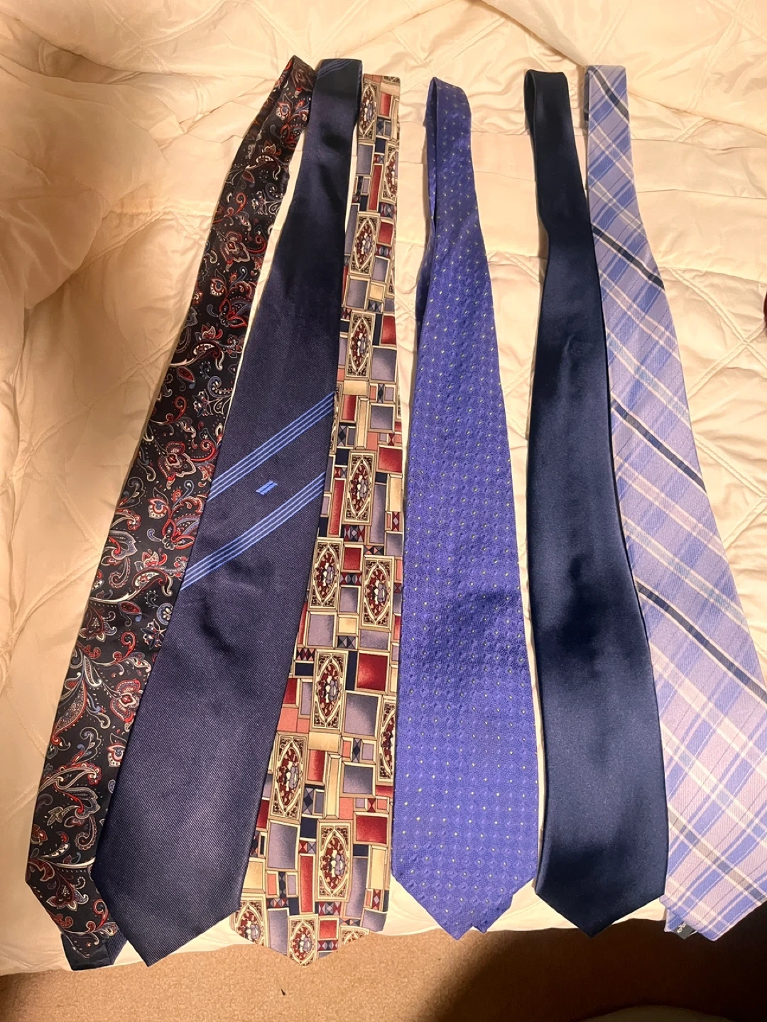 Selling a collection of men's ties in great condition! Brands include Benetton, For Int, Consenso Uomo, Structure, Van Heusen, and Sharpe. A variety of colours and patterns to choose from