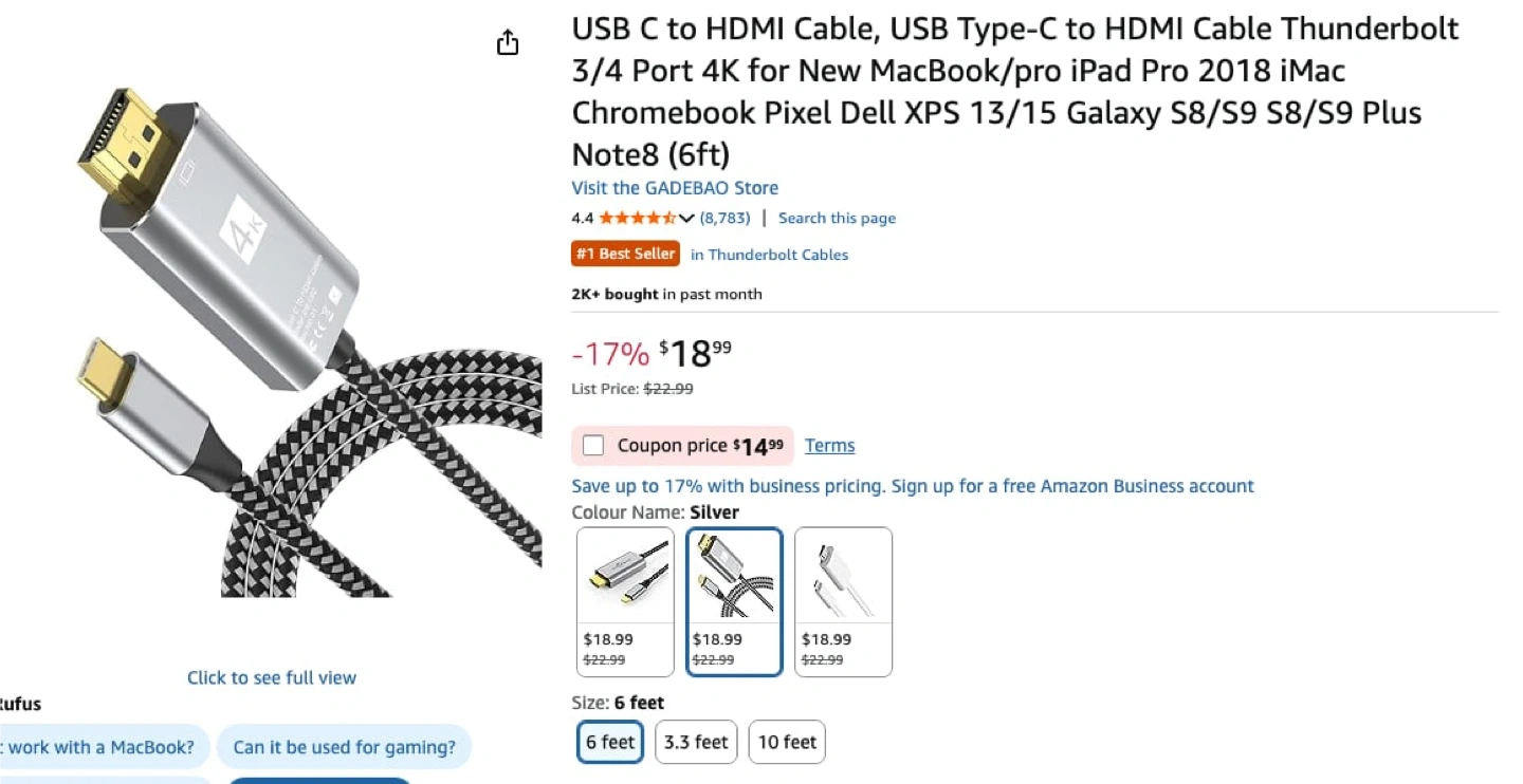 This is a braided USB-C to HDMI cable, perfect for connecting your devices. It features durable construction for reliable use. Connect your laptop or phone to a monitor or TV for a larger display!