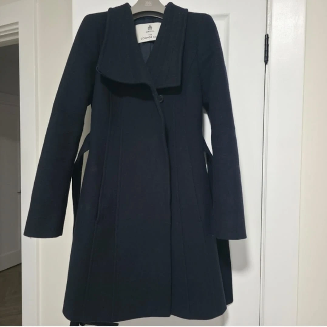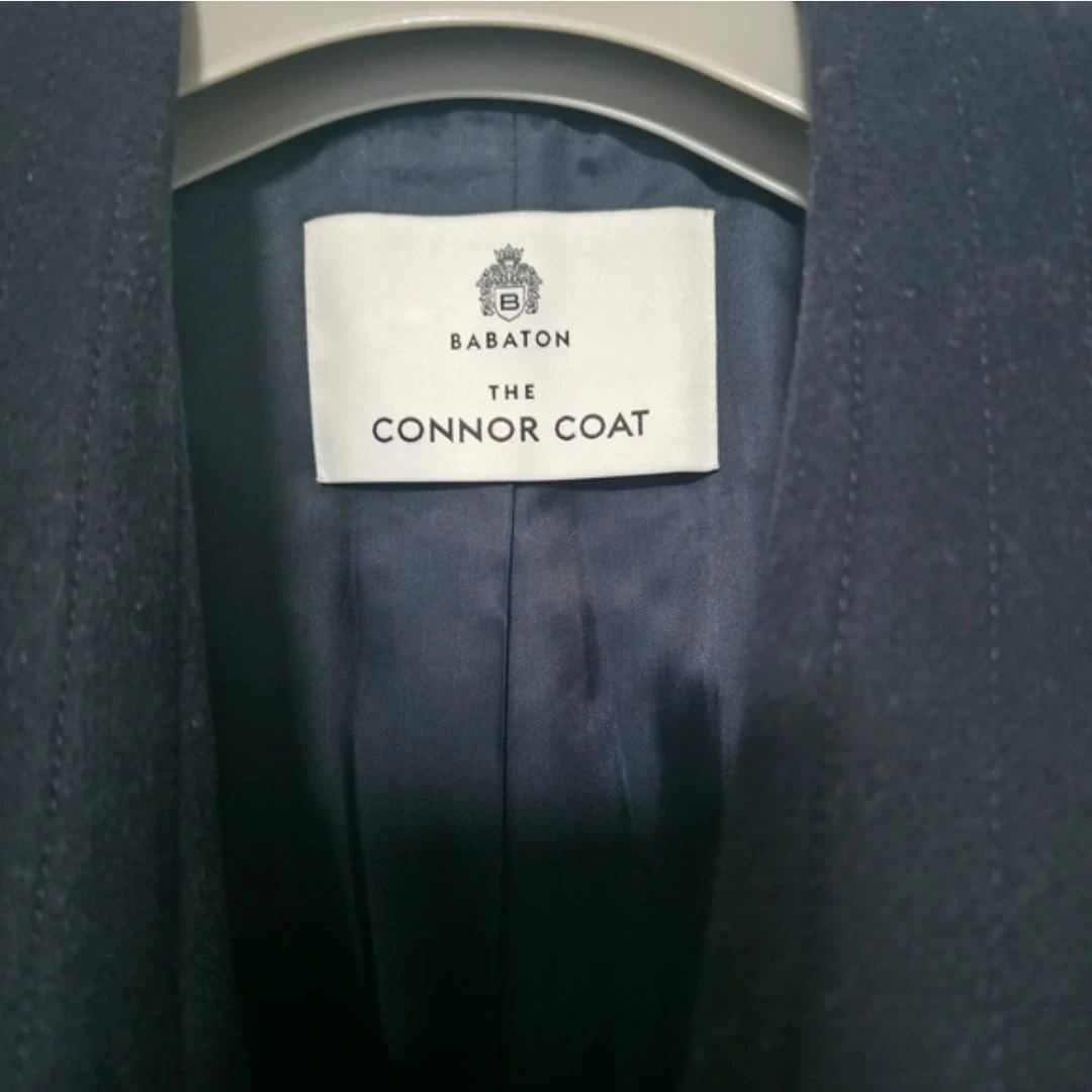 Selling a beautiful Babaton The Connor Coat! It's in great condition and ready to keep you warm. The coat is a stylish navy colour and features a slim fit. Made with virgin wool from Italy and vegan chamois