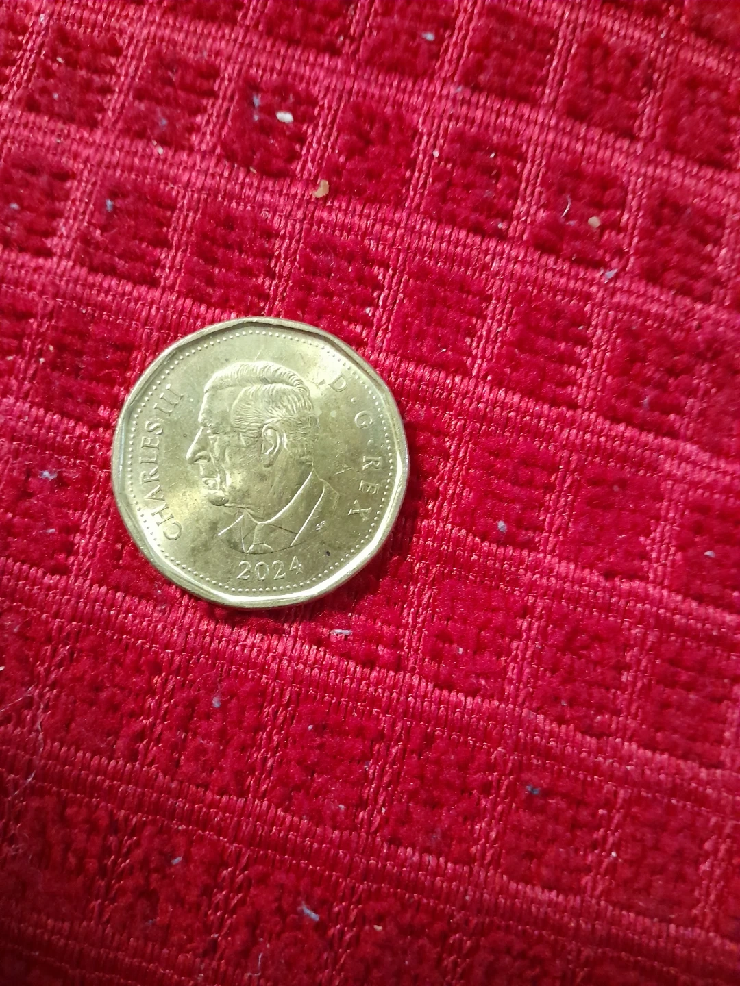 This is a 2024 Canadian dollar coin featuring King Charles III on one side and a colourful design on the other. It's a circulating coin from Canada.