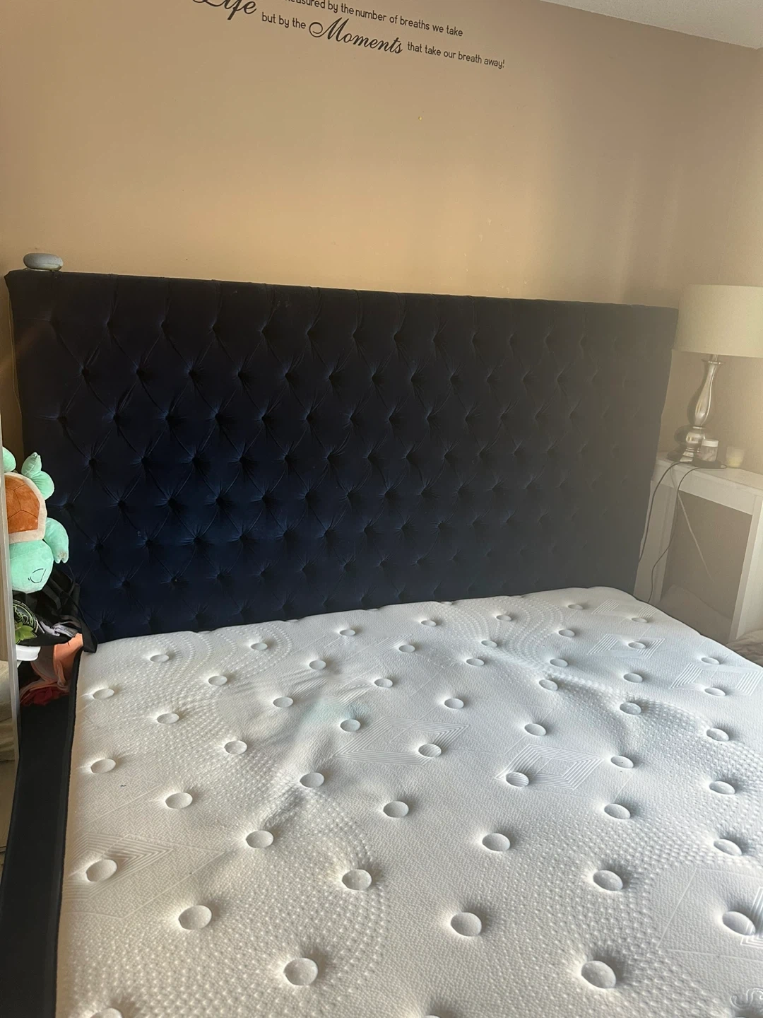 Moving and need to sell this stunning king size mattress and bed frame in royal blue velvet velour! π