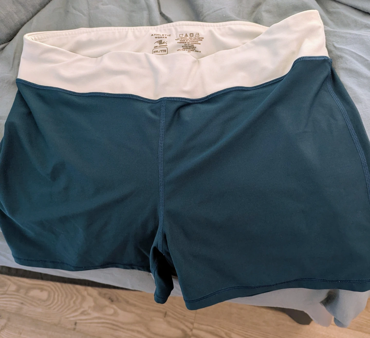 Athletic Works DRI-MORE shorts in teal. These are size XXL or TTG. They are made of 92% polyester and 8% spandex.