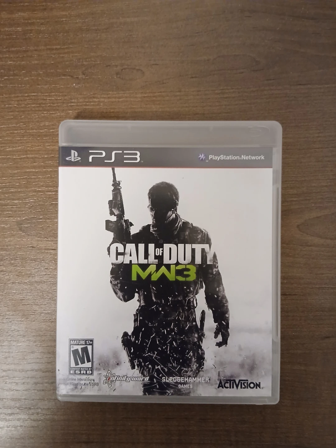 This is Call of Duty: Modern Warfare 3 for the PlayStation 3. It includes the game disc and case. It's the definitive PS3 experience with multiplayer, leaderboards, and more!