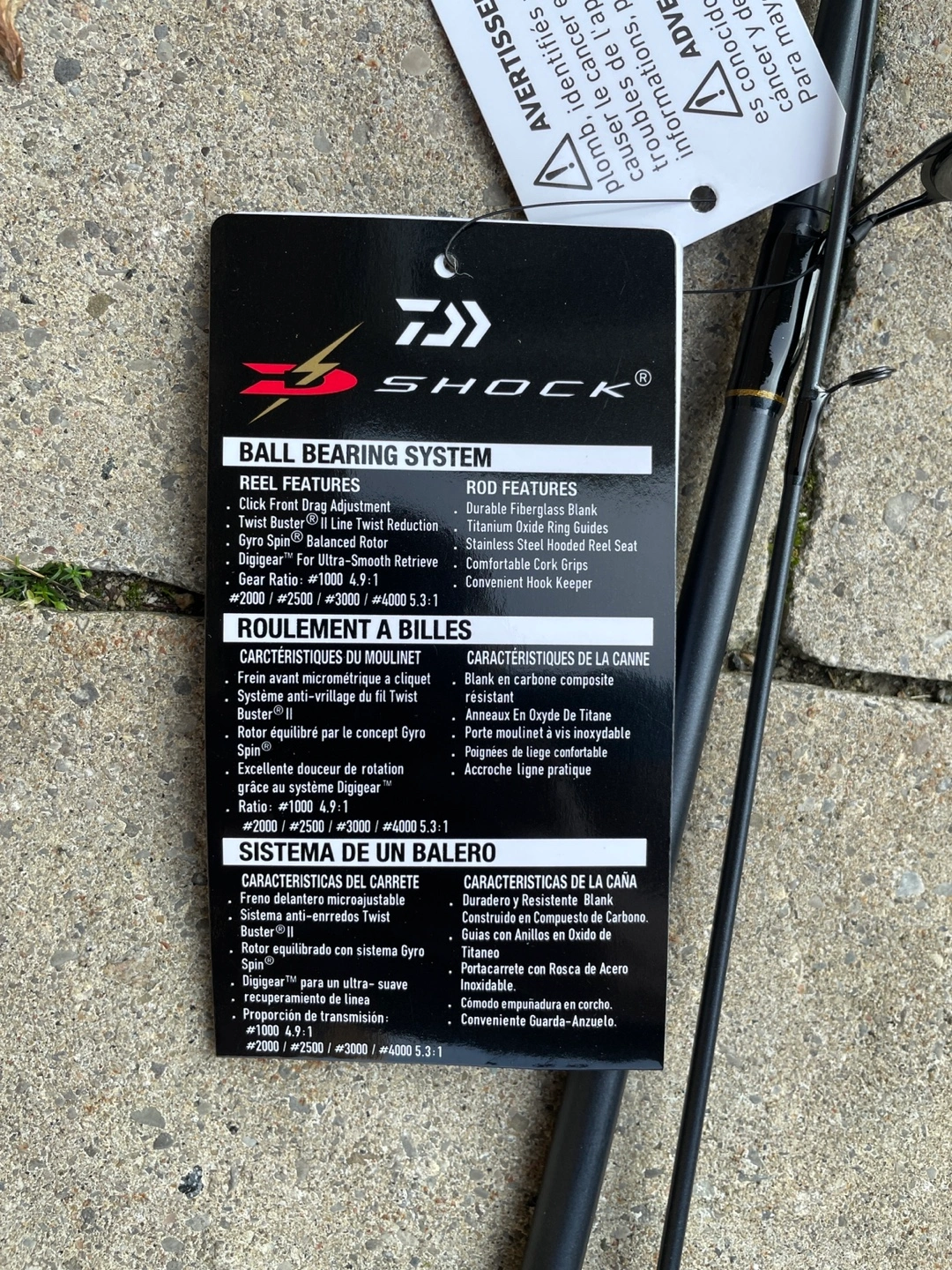 Selling a Daiwa Shock spinning rod and reel combo! Features include a durable fibreglass blank, stainless steel hooded reel seat, and comfortable cork grips. The reel has front drag adjustment, twist buster, and gyro spin. It's in great shape and ready for your next fishing adventure!