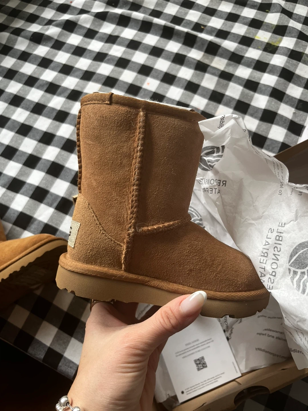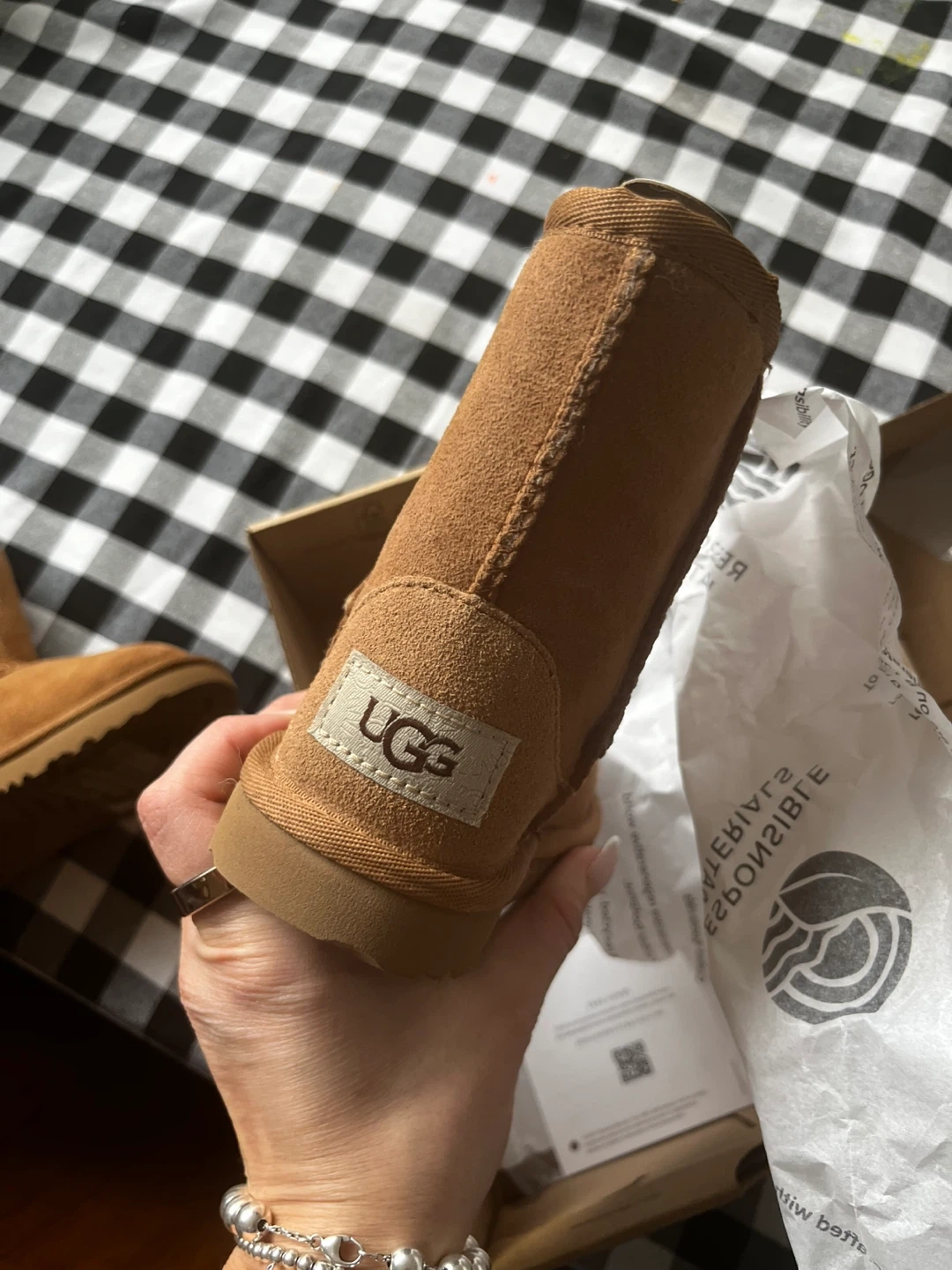 Selling a pair of brand new UGG Classic II boots in chestnut! They are a size 7 and come with the original box. Perfect for keeping your feet warm and cozy this winter