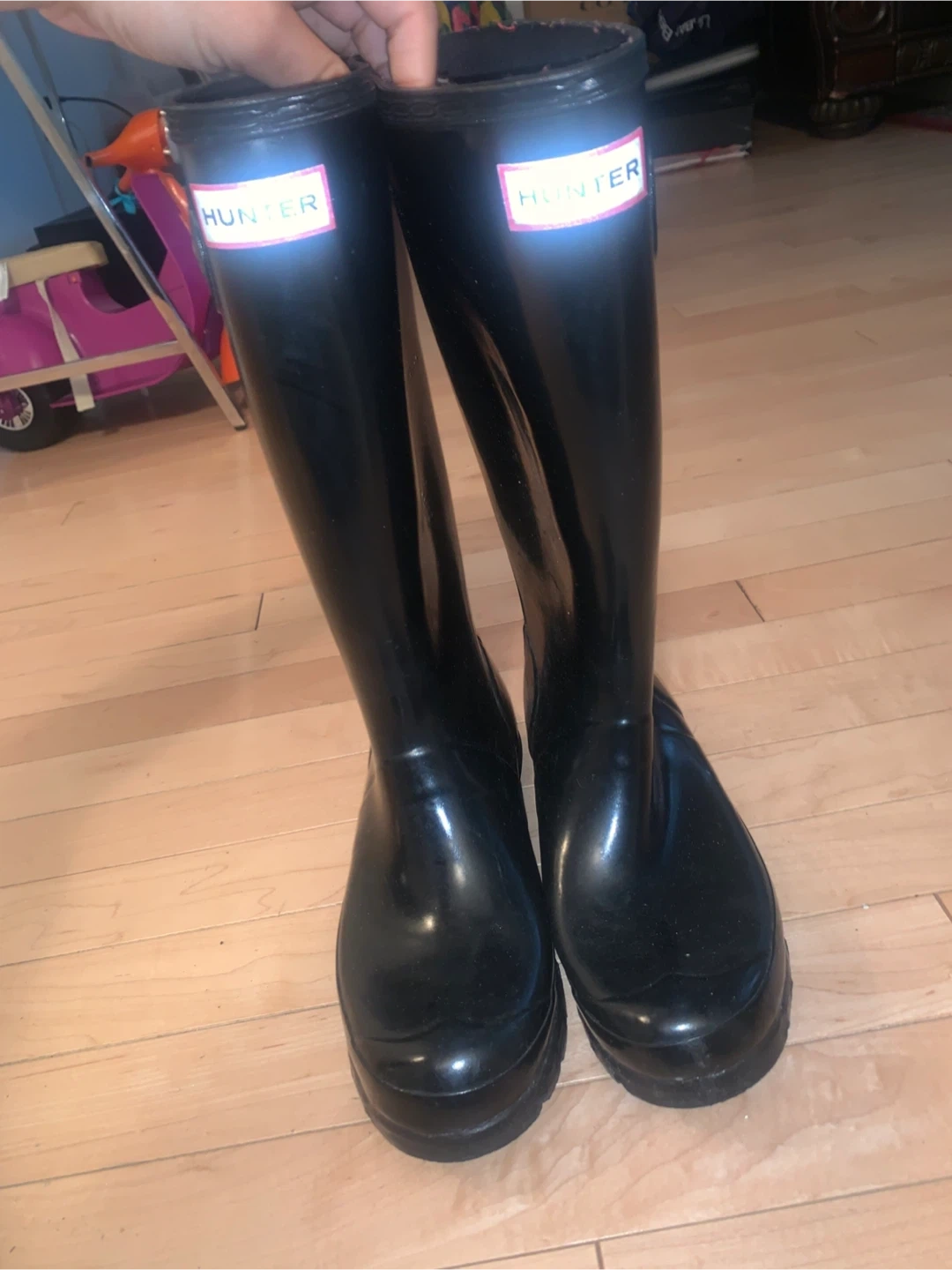 Hunter Original Kids Gloss Tall boots in black. Size EU 37 (US 5B/6G, UK 4). Durable rubber material, perfect for wet weather. Keeps little feet dry and protected!