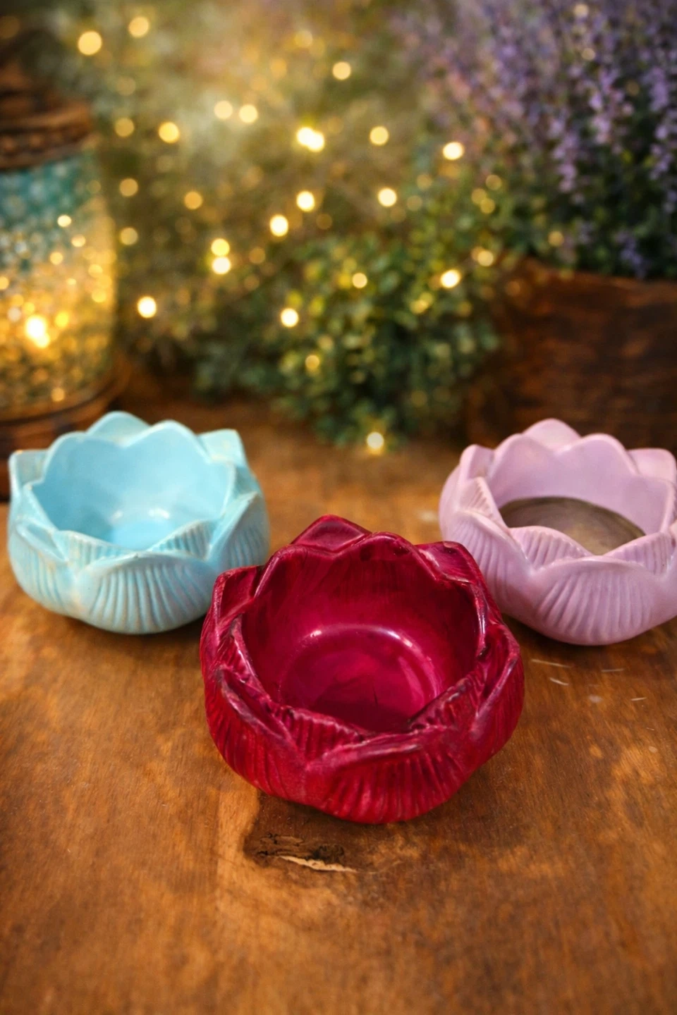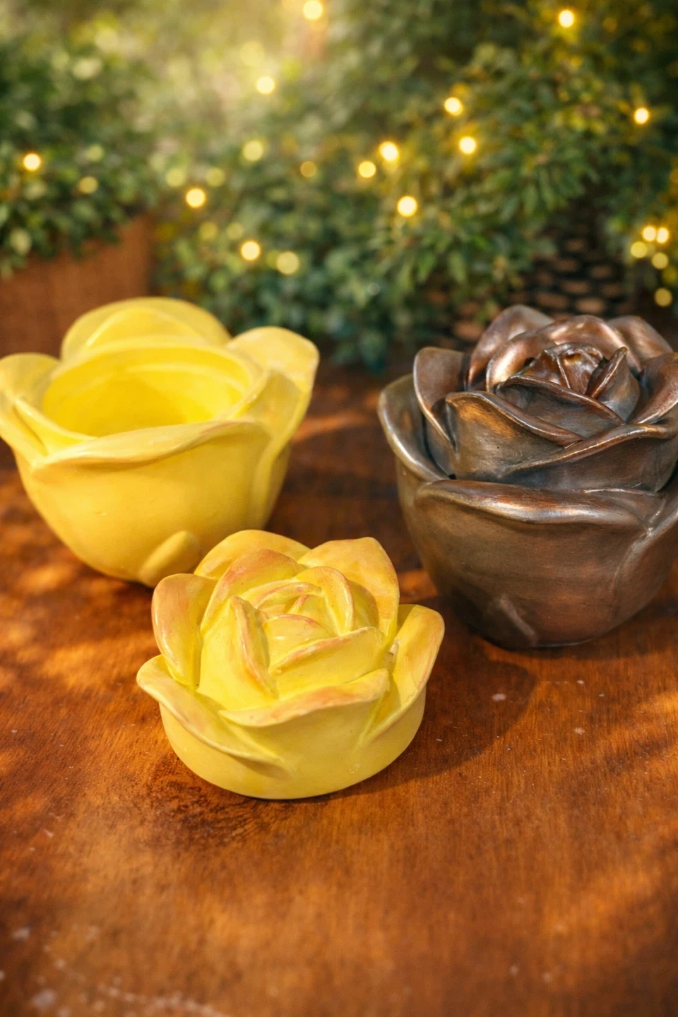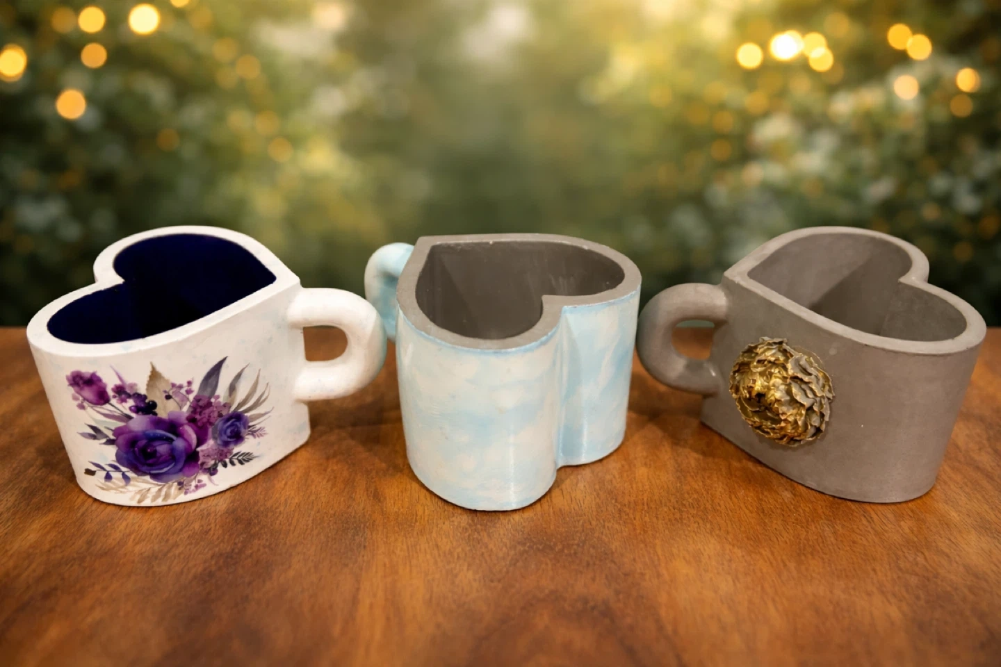 These decorative pieces come in various unique designs, including flower shapes, textured cylinders, and heart cups. They're suitable for small plants, succulents, candles or as general holders. Made from eco resin, hard, durable, long lasting