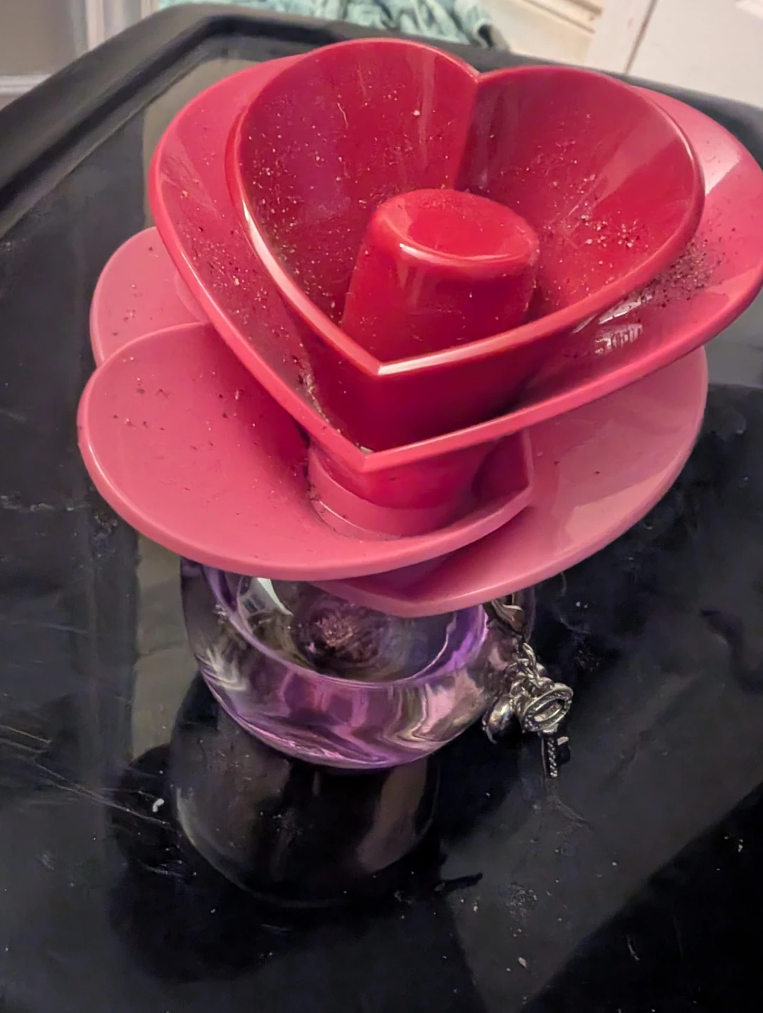 A fruity and floral fragrance. This perfume comes in a heart-shaped bottle. It's a playful and sweet scent. Almost full bottle only about 10-15 sprays used.