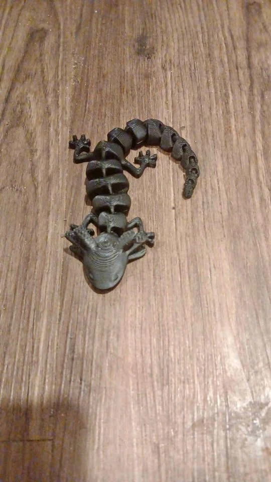 High-quality, flexible 3D printed articulated lizard figurine. This dark grey gecko has a segmented body for articulated movement. It's great for display on a desk or as a fun manipulative toy. Cash payment and pickup only.
