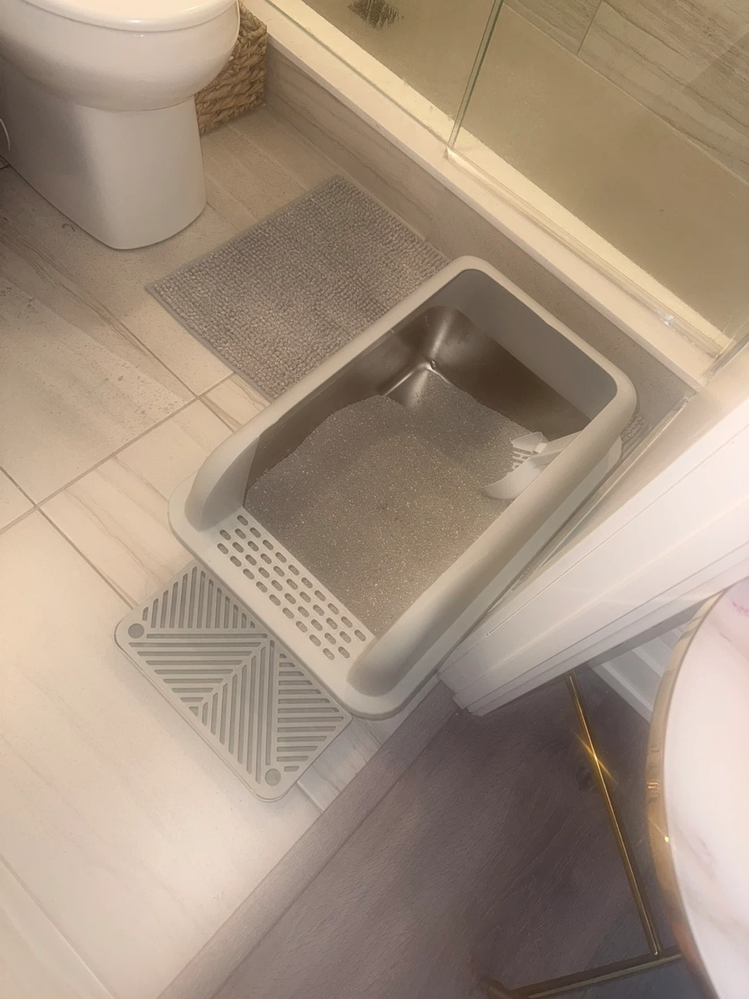 Stainless steel Grey Litter Box with Scoop and Mat
