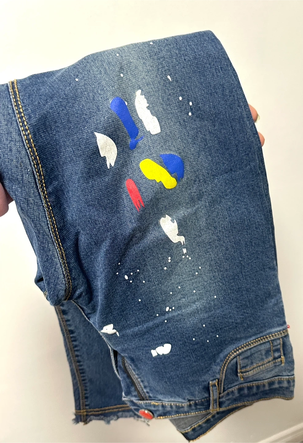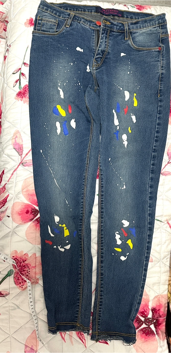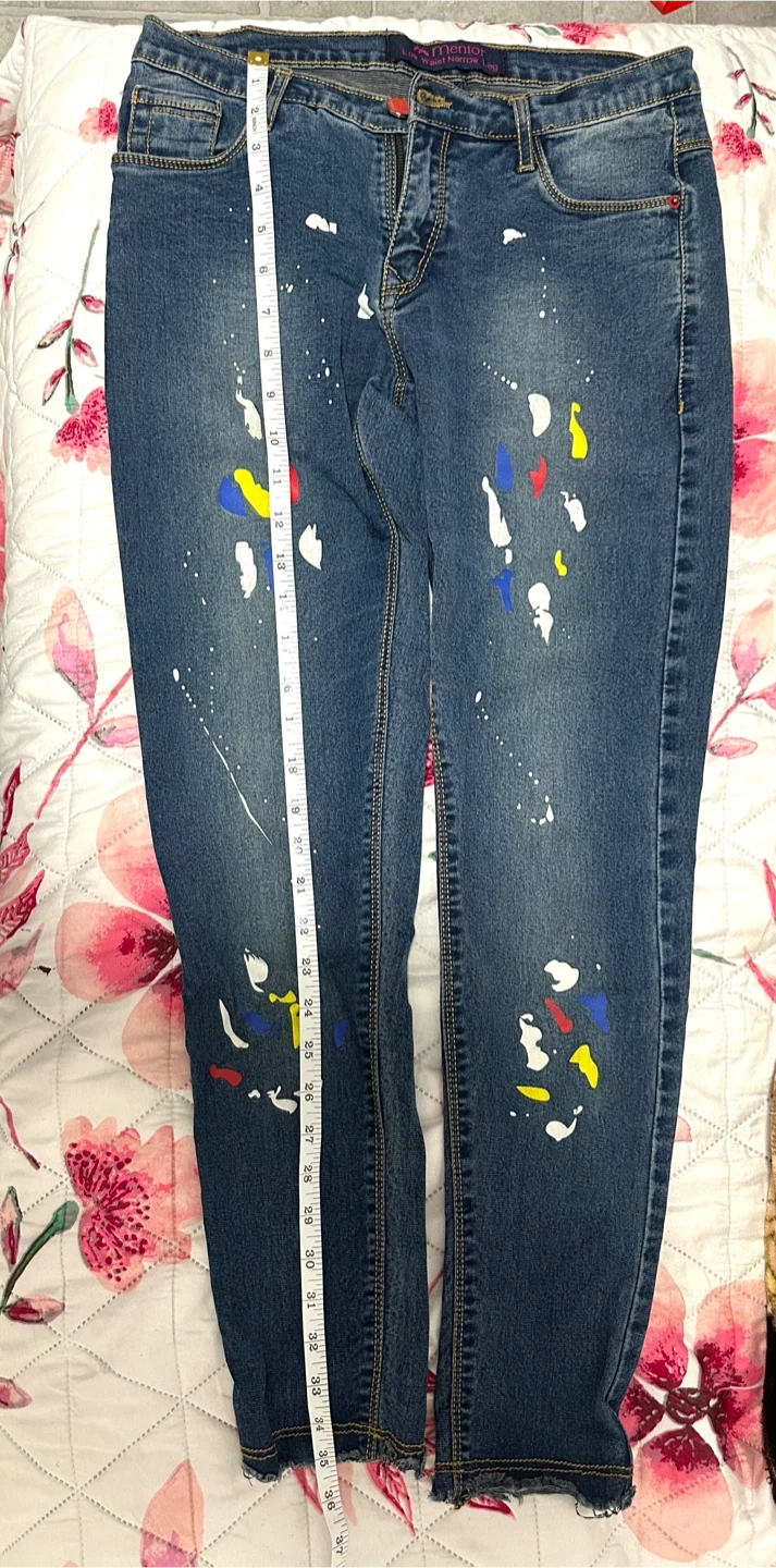Cool jeans with a unique paint splatter design. These Mentor jeans have a low waist and narrow leg style. Waist measures about 31-32 inches, inseam is around 28-29 inches. Fun for a casual look. Price is negotiable!!