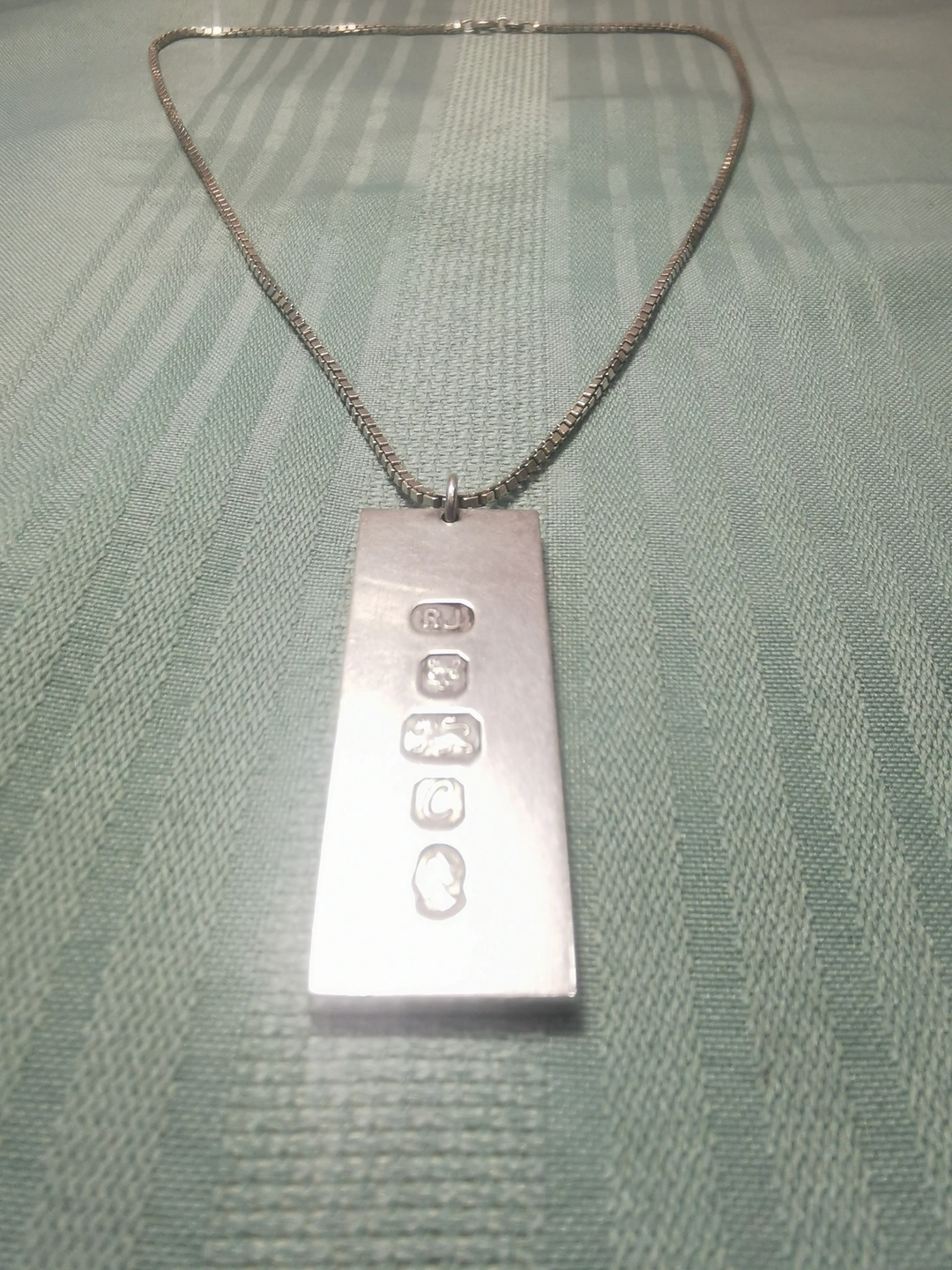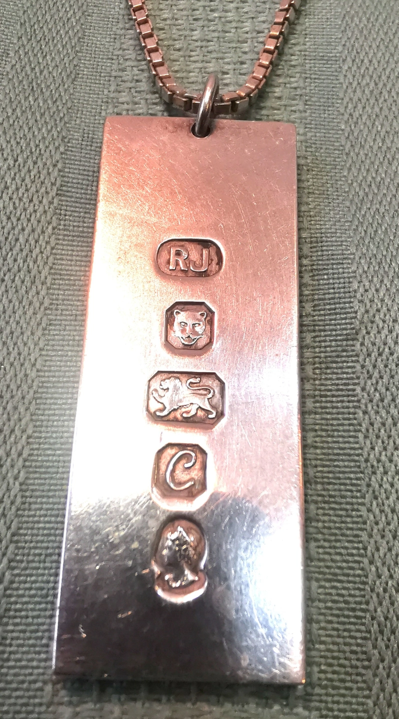 1977 Silver Jubilee Ingot Necklace 38g Sterling Silver London