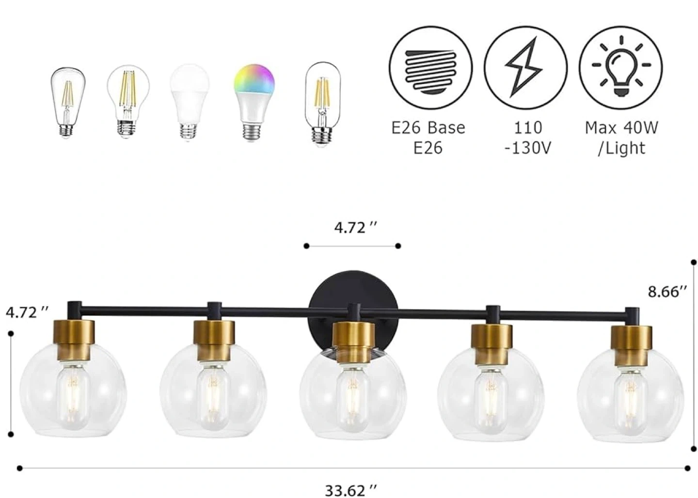 5 Light - Bathroom Vanity Light with Clear Globe Glass Shades