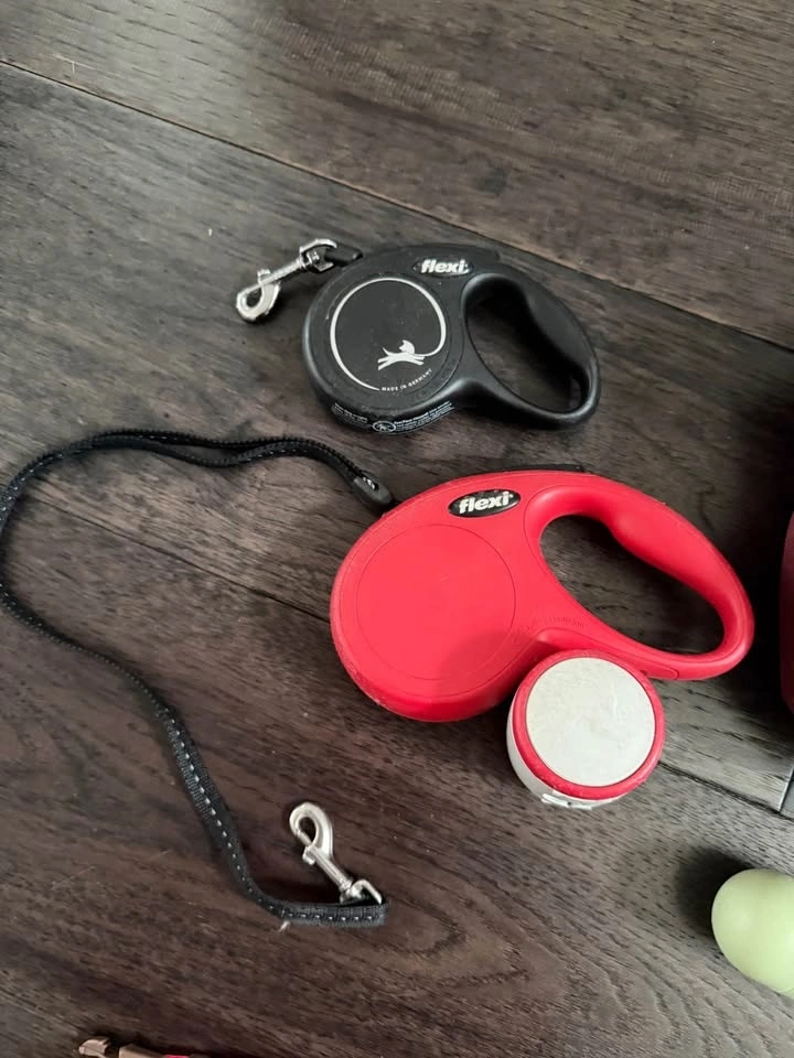 Used dog accessories including: Flexi Leashes, Training Leash, Goody Bag for Dog Activity, Poop Bag Dispenser, Dog Collar. Cash only. Located in East London ON, near Hamilton Rd and Commissioners Rd.