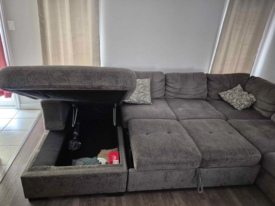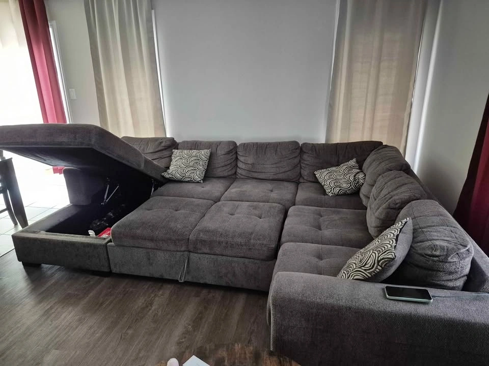 Upgrade your living room with this massive, multi-functional U-shaped sectional from The Brick. This is a "do-it-all" piece of furniture, perfect for hosting guests or movie nights.