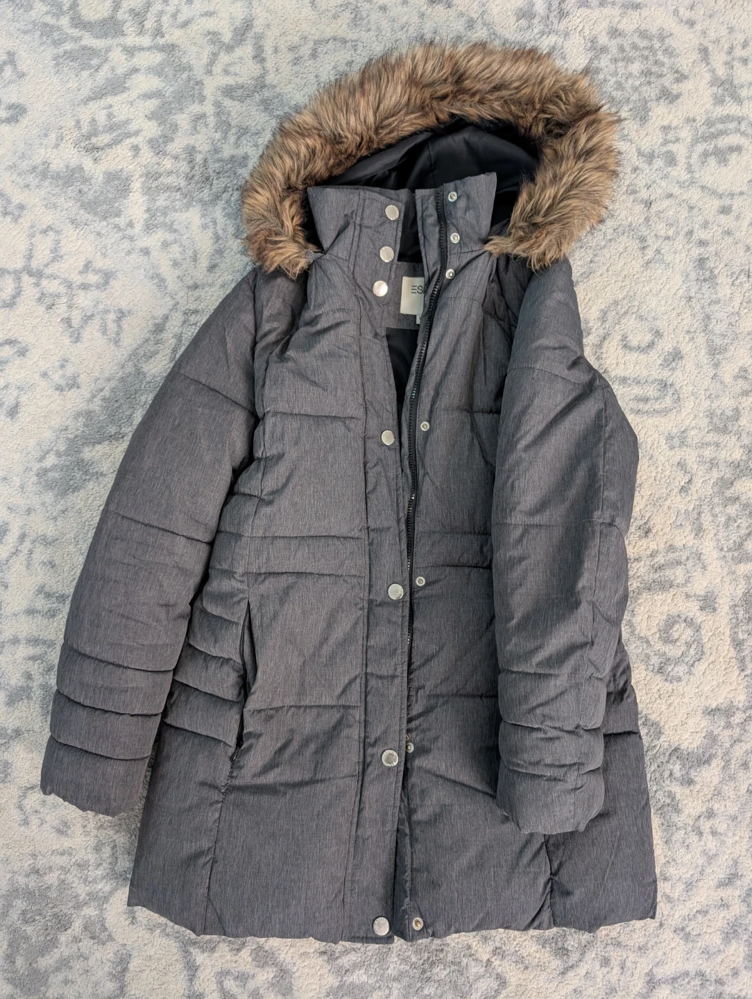 Cozy up in this stylish Esprit puffer coat! It's a lovely grey colour and features a faux fur hood to keep you extra warm. Perfect for those chilly Canadian days!