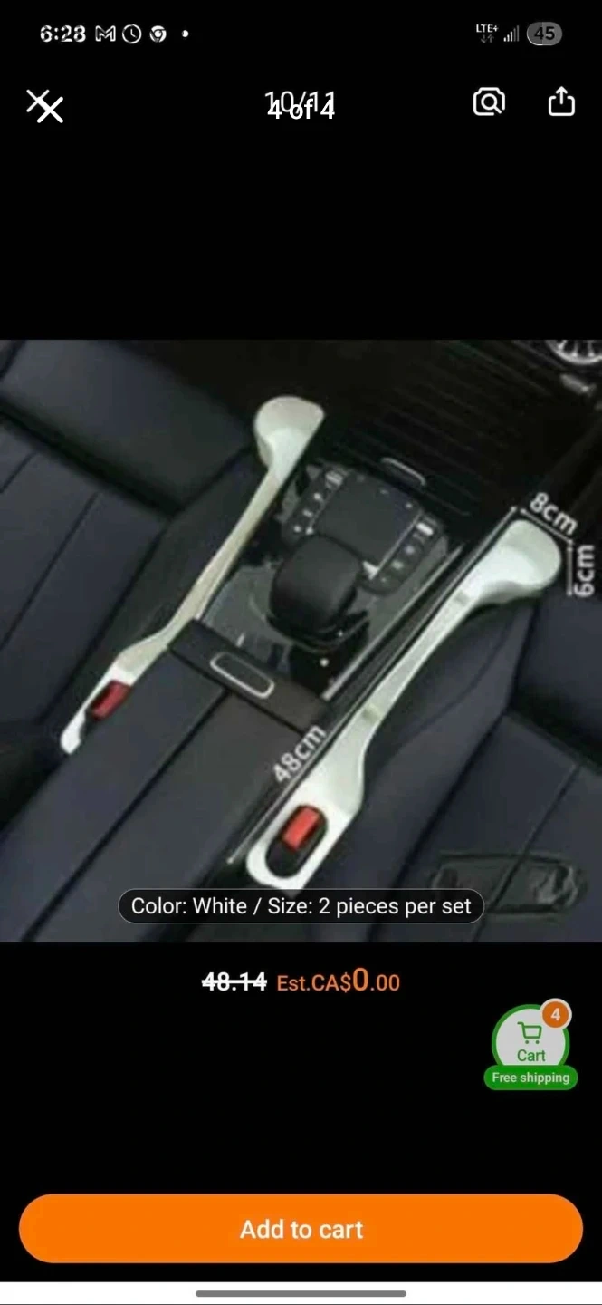 This set includes two cup holders designed to fit in the car's center console. They are red and measure 48cm long, 8cm wide, and 5cm deep. They're great for keeping drinks secure while driving!
