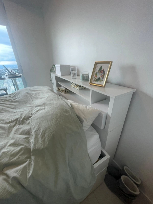 Queen-sized headboard with shelves