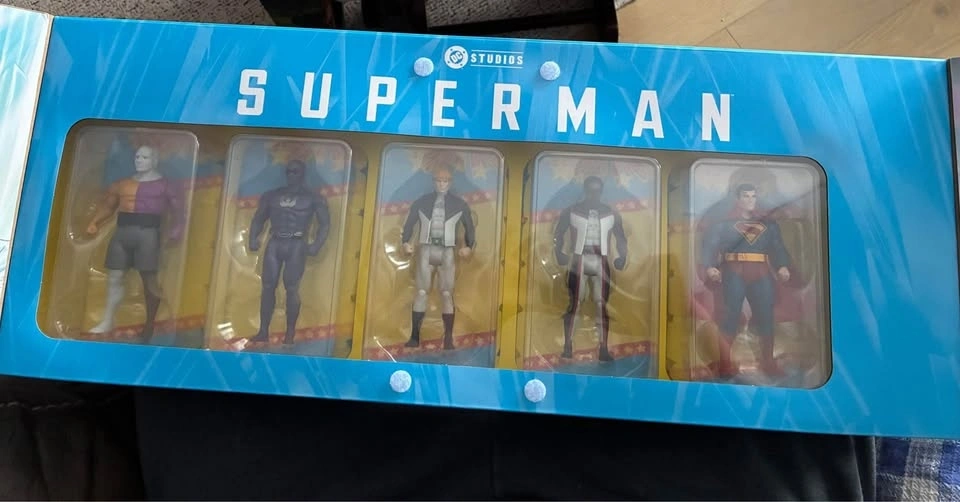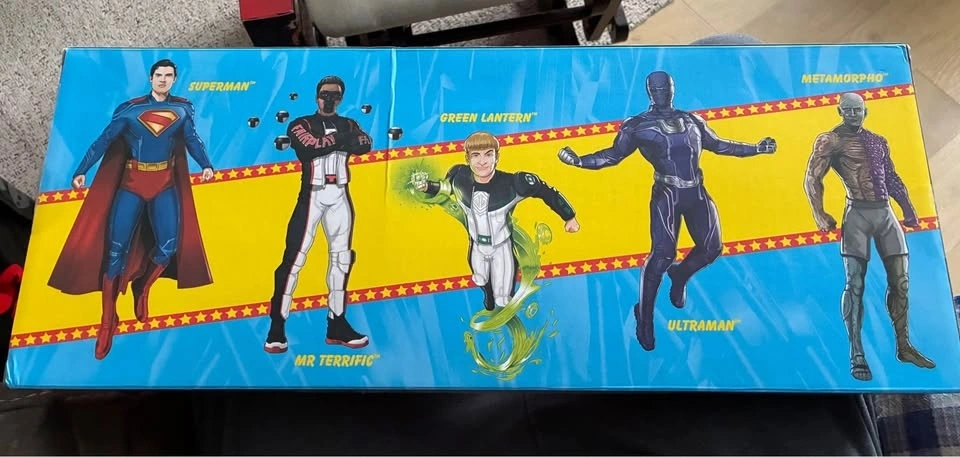This is a McFarlane Toys DC Super Powers Superman Movie 5-Pack Gold Label action figure bundle. It includes five 4 to 5-inch scale figures: Superman, Mr. Terrific, Green Lantern (Guy Gardner), Ultraman, and Metamorpho. The figures feature retro-inspired styling and articulation unique to the classic DC Super Powers line from the 1980s. The set is part of the McFarlane Gold Label Collection. The characters' appearance is based on the upcoming Superman feature film.