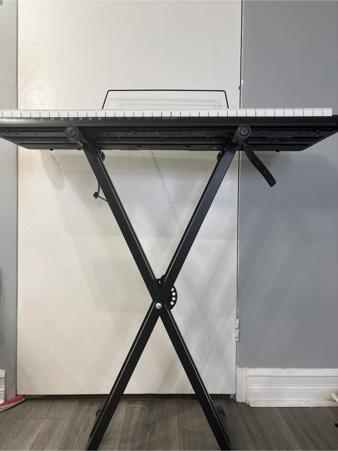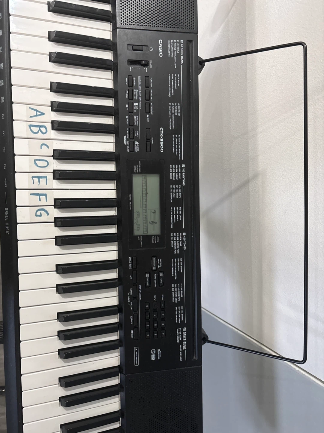 The keyboard is in excellent working condition and has been kept in a clean environment. It includes a built-in music stand and labels on the keys to help with learning (can be easily removed if preferred). Great for students or anyone looking to start their musical journey!