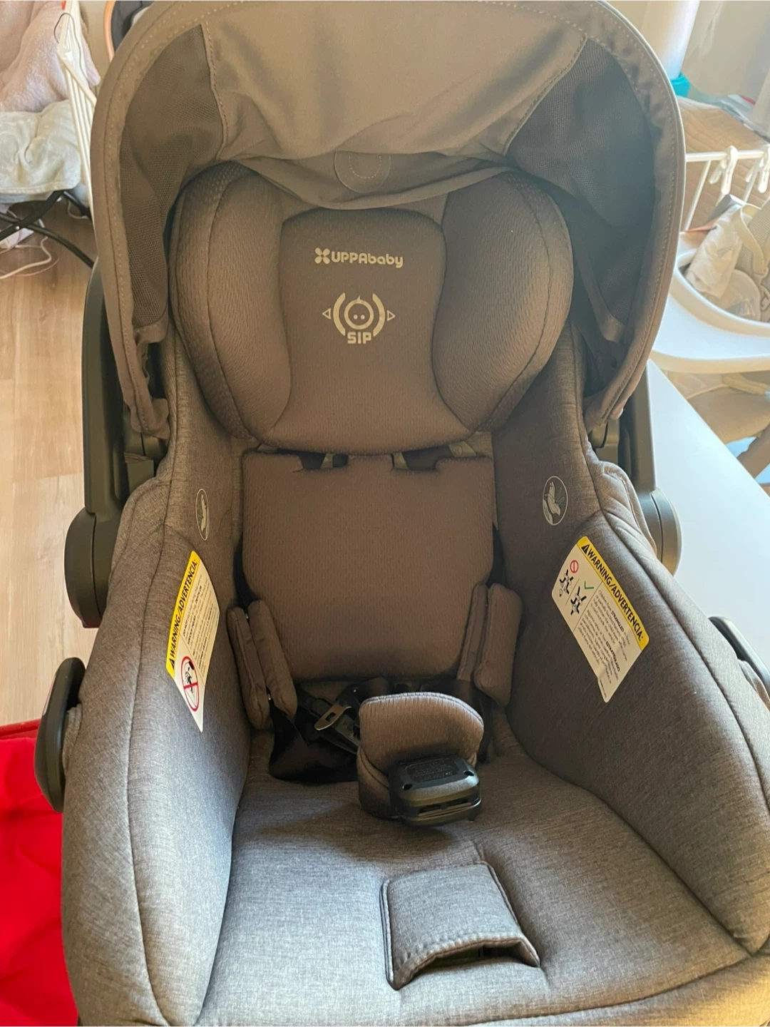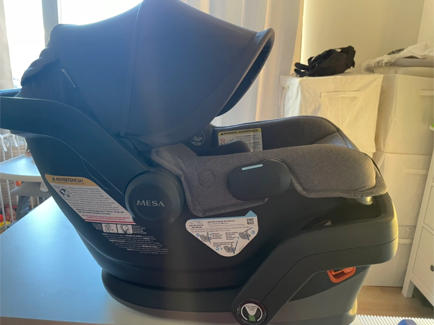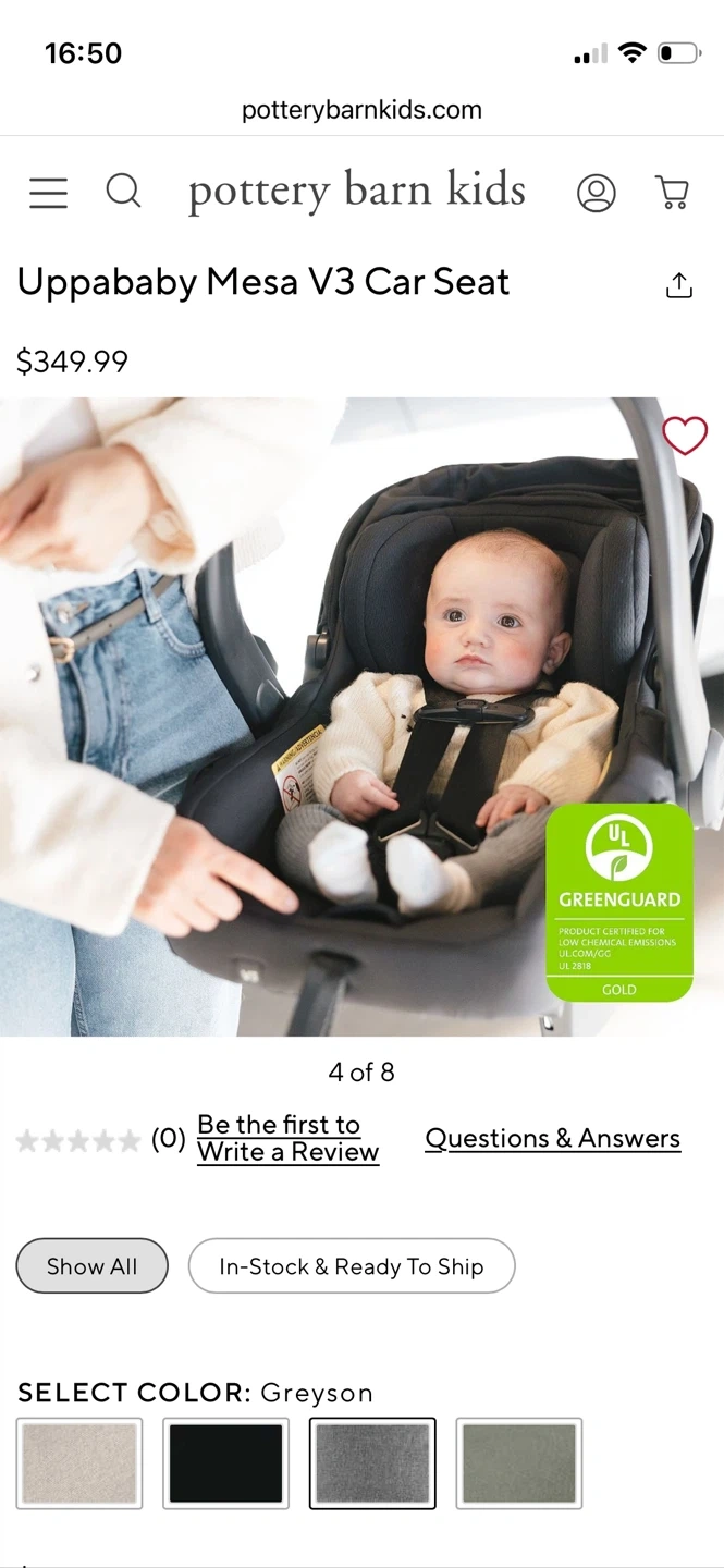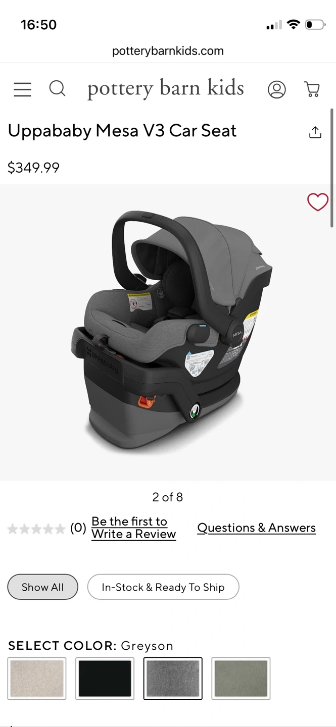 This is the Uppababy Mesa V3 infant car seat in the Greyson color.