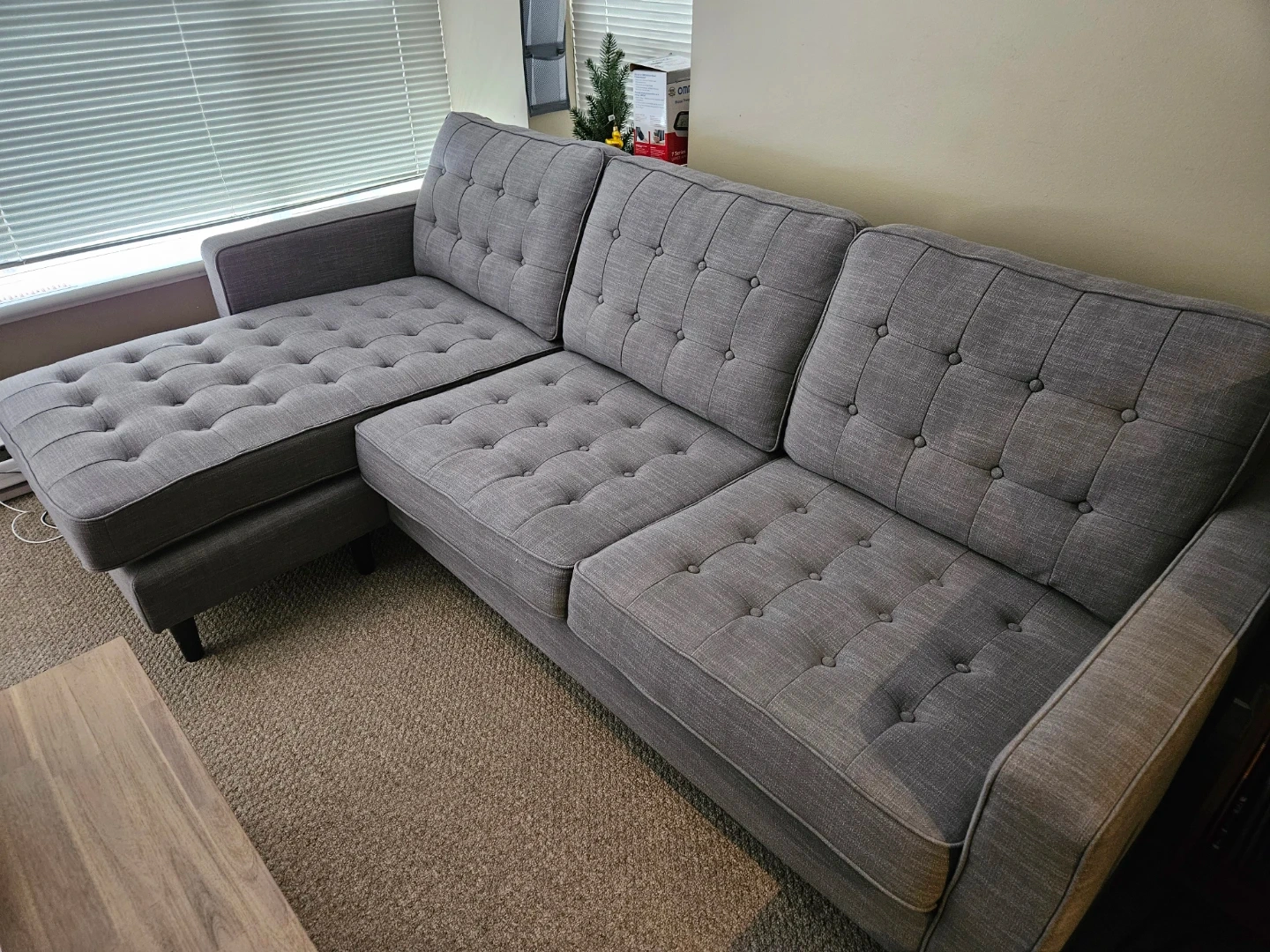 Structube: Grey Tufted Sectional Sofa
